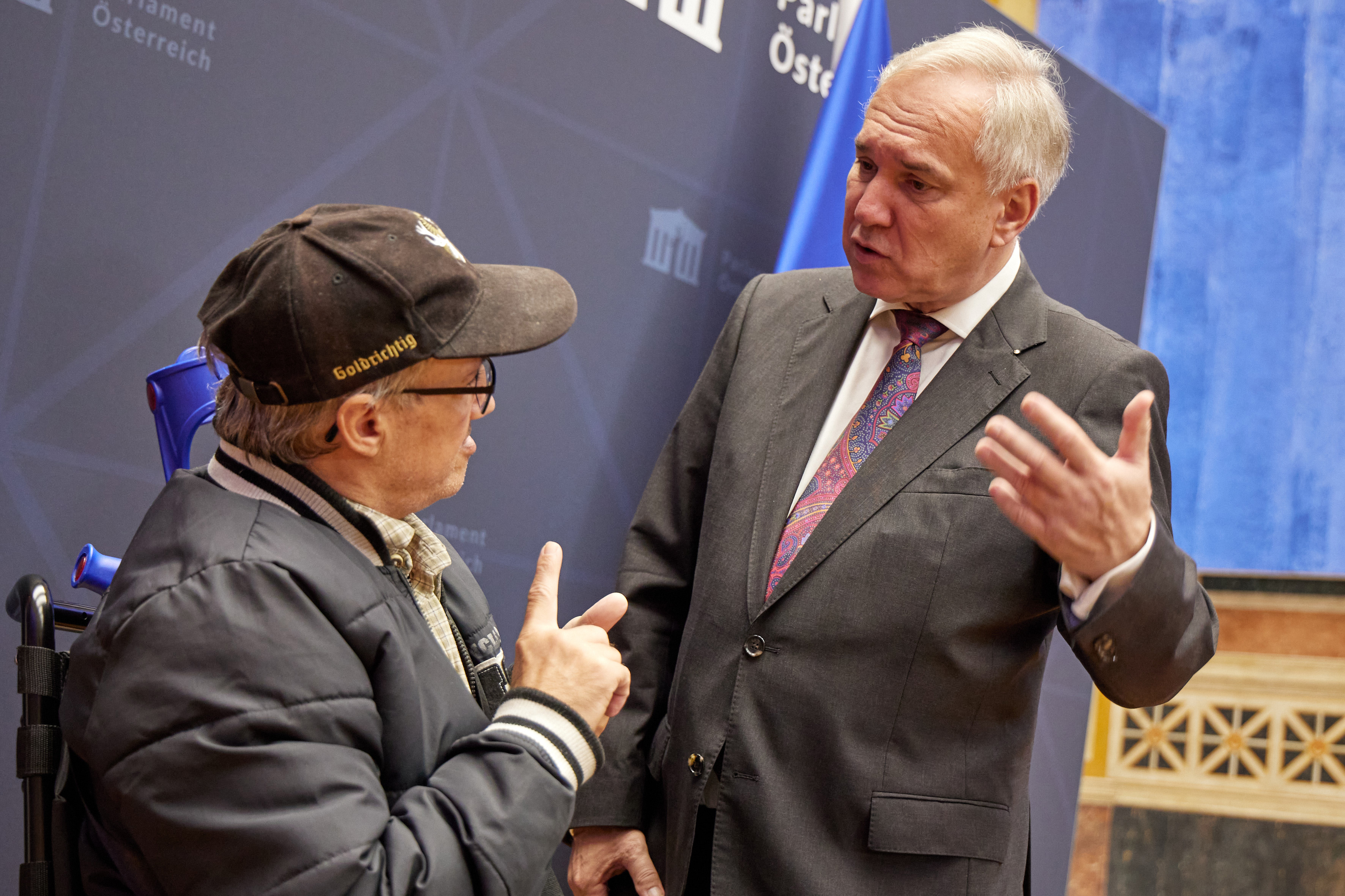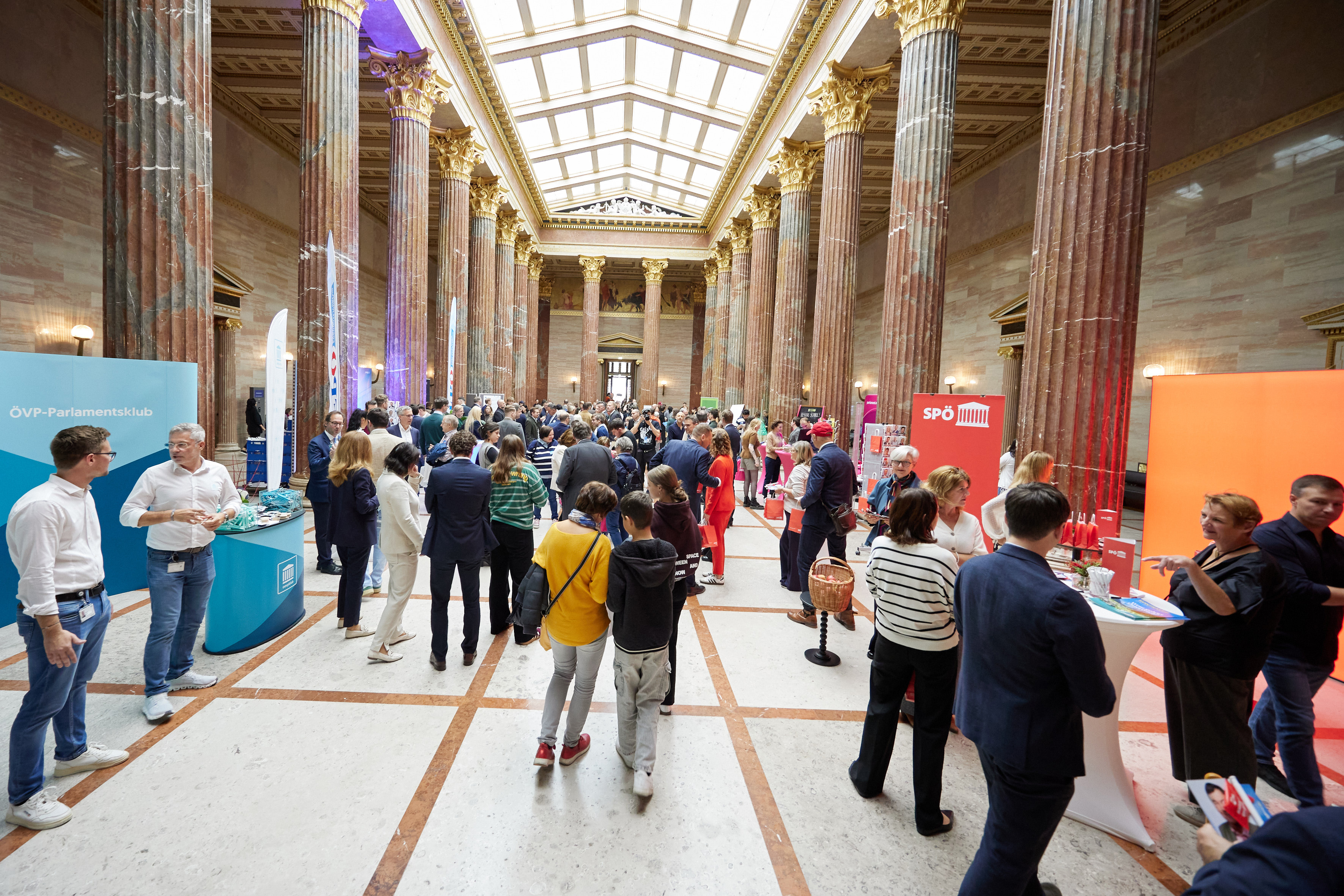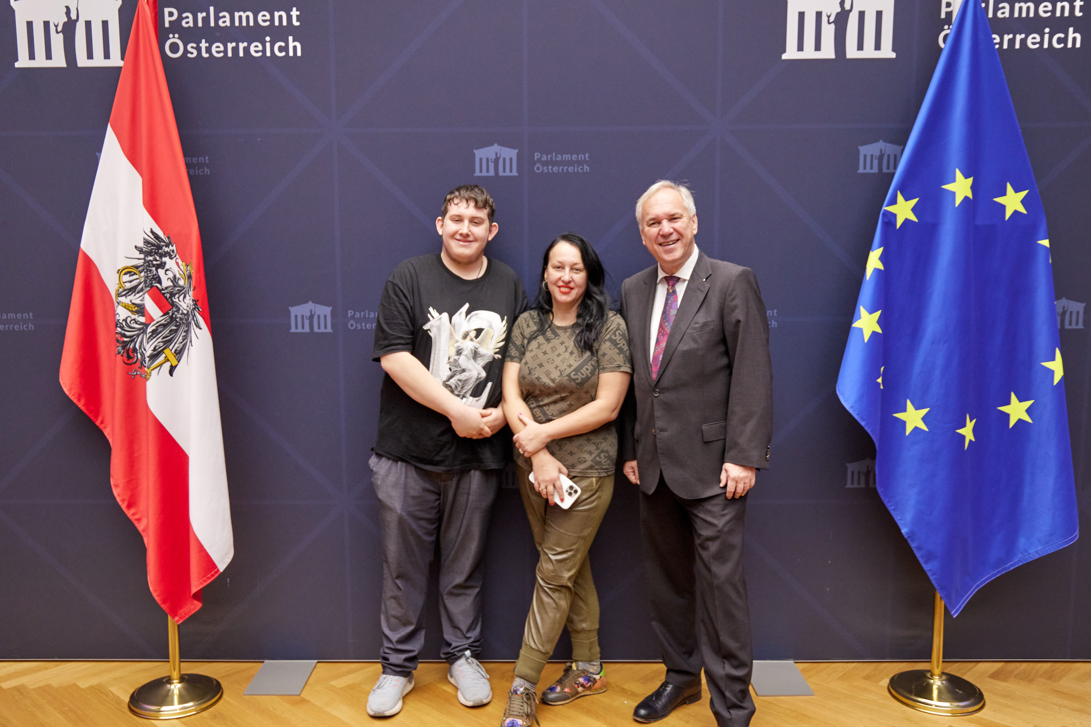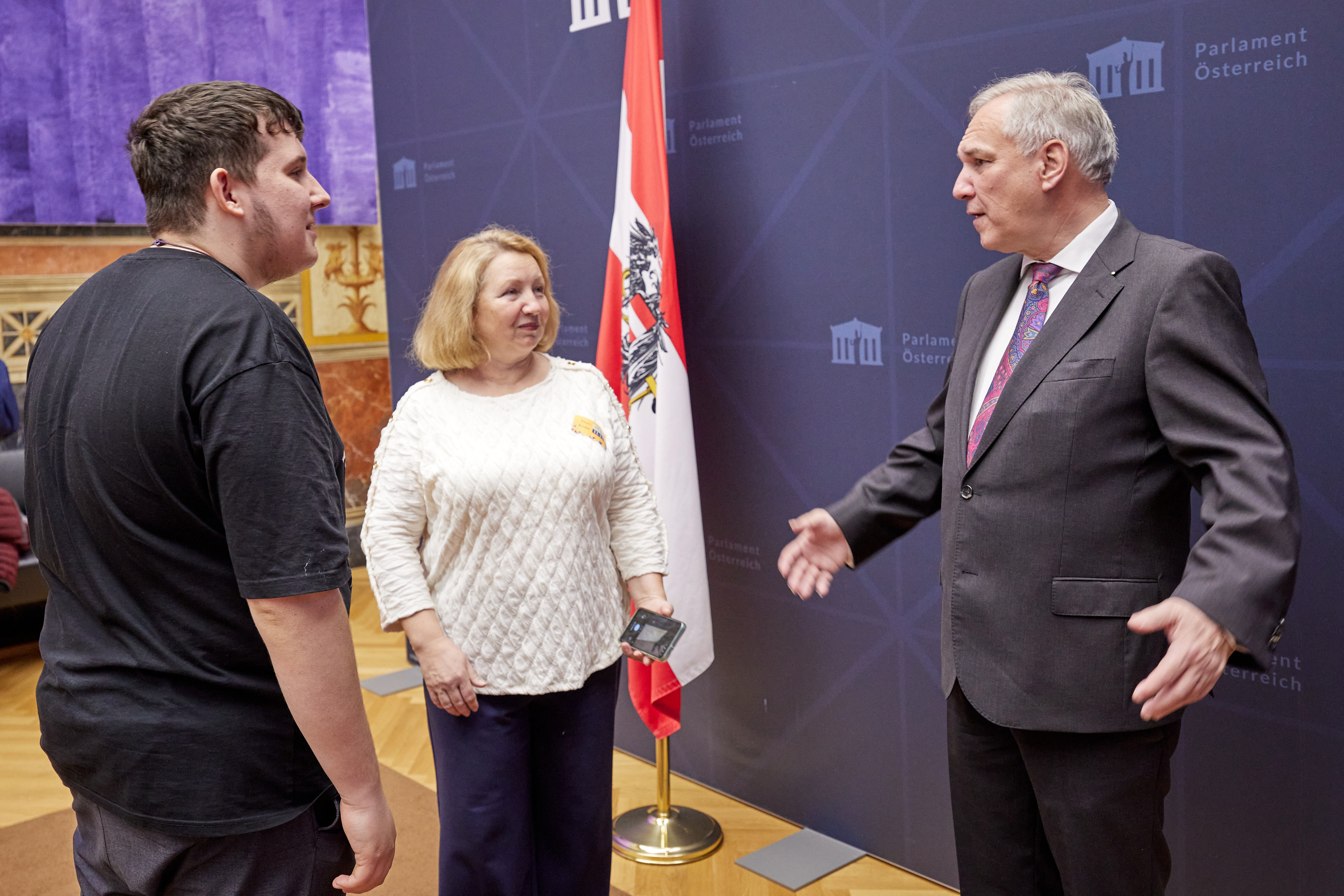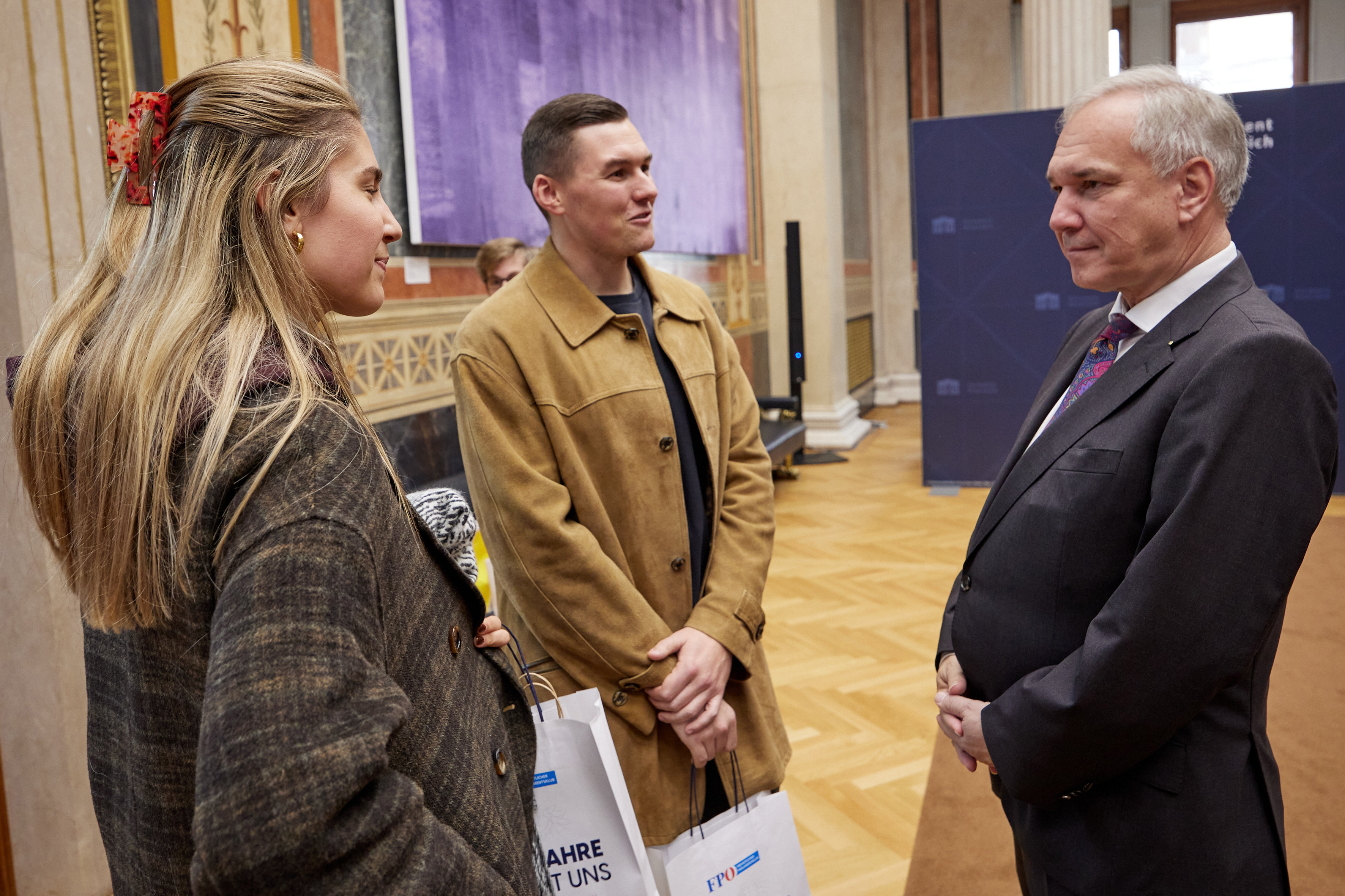 Nationalratspräsident Walter Rosenkranz (FPÖ) im Gespräch mit Besucherinnen und Besucher / Parlamentsdirektion/Thomas Topf