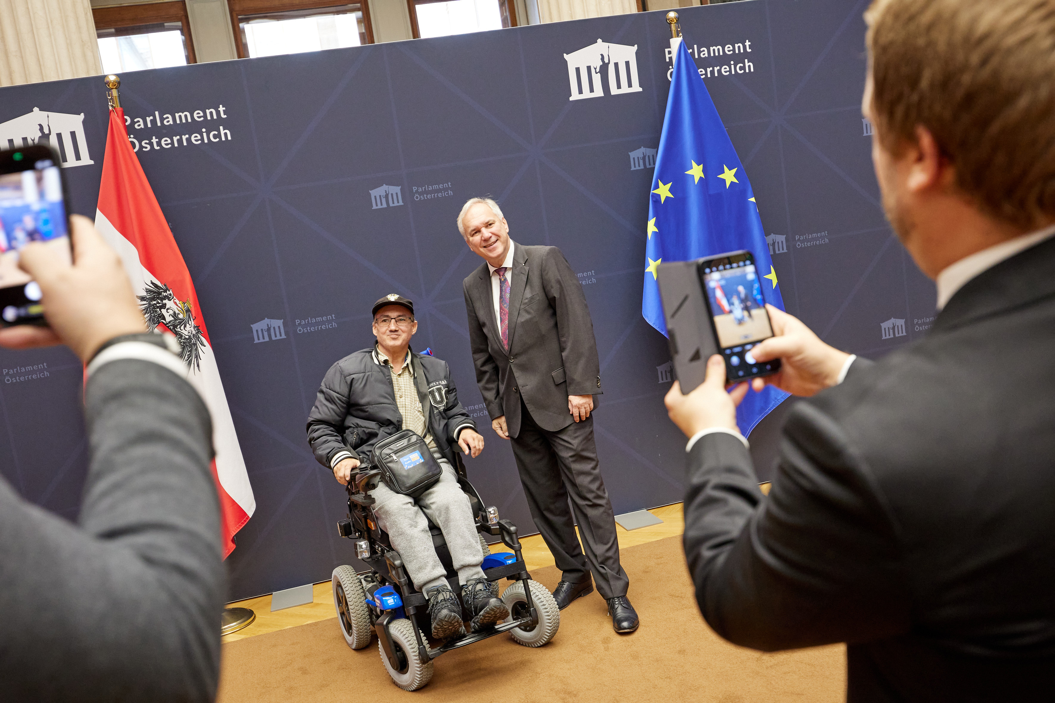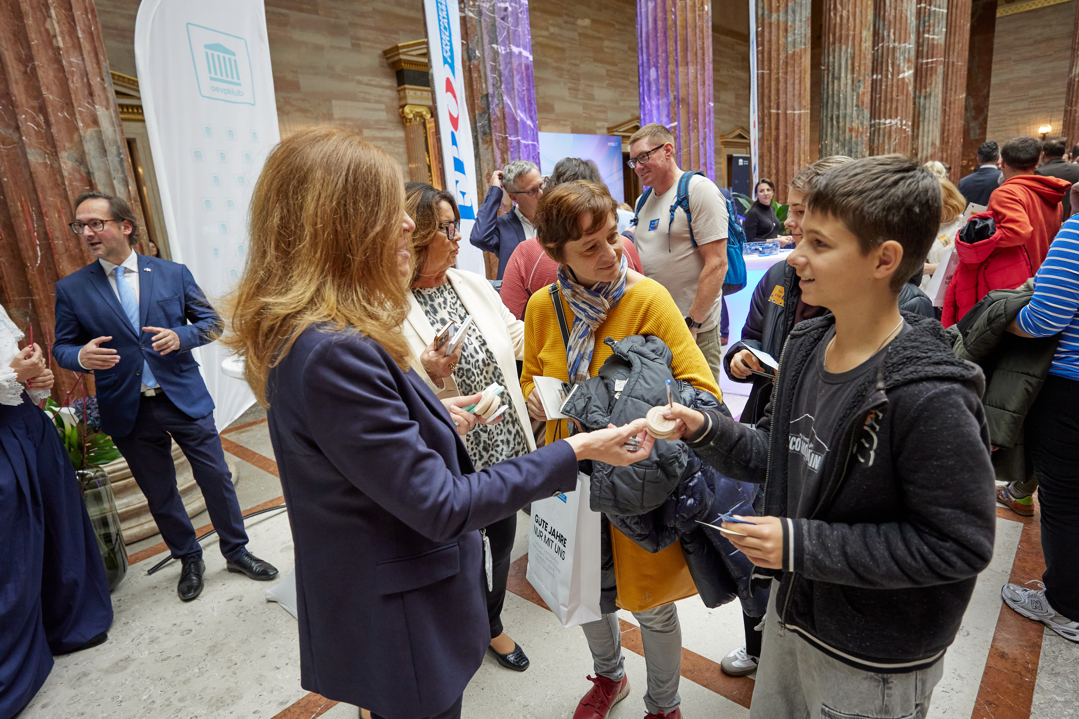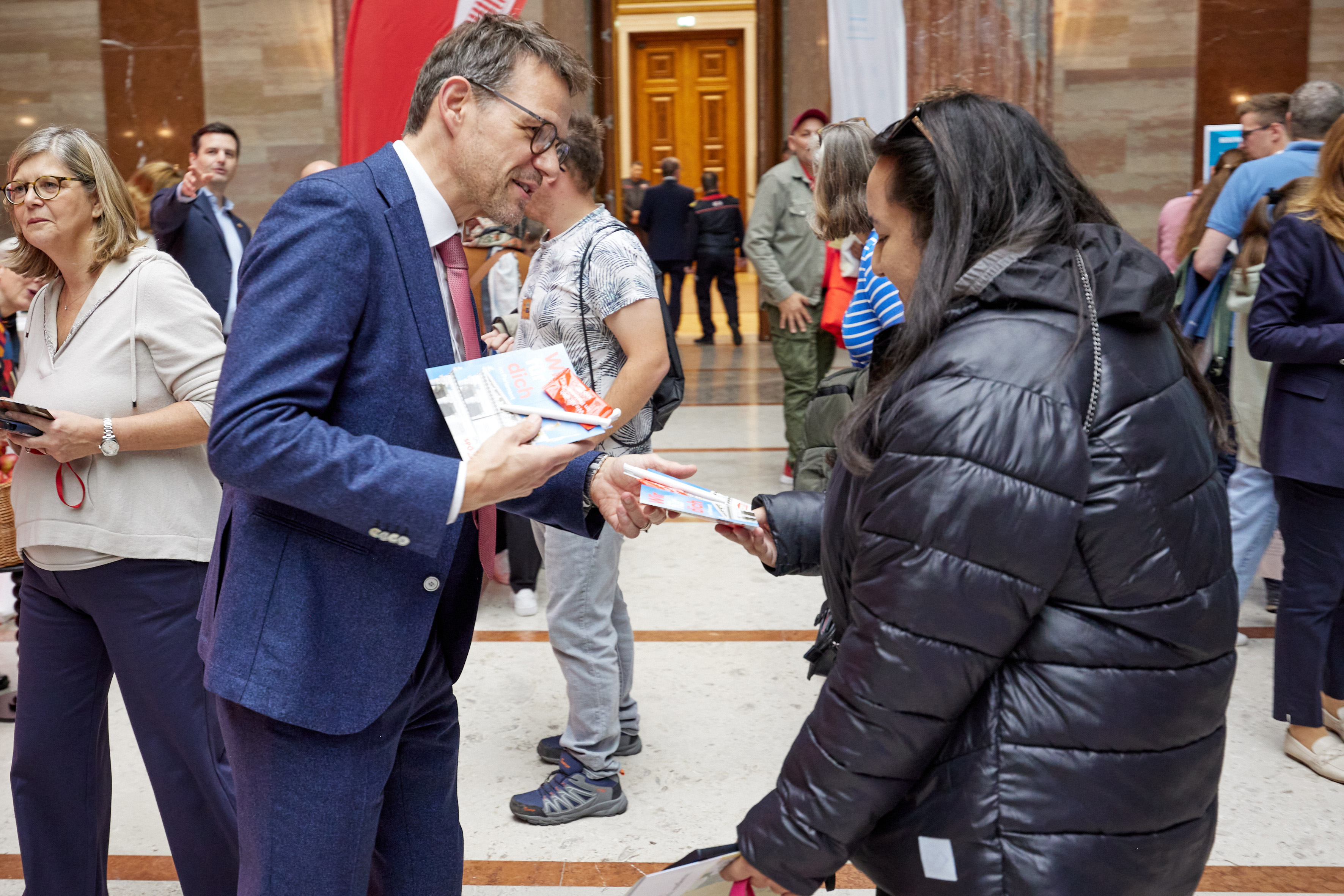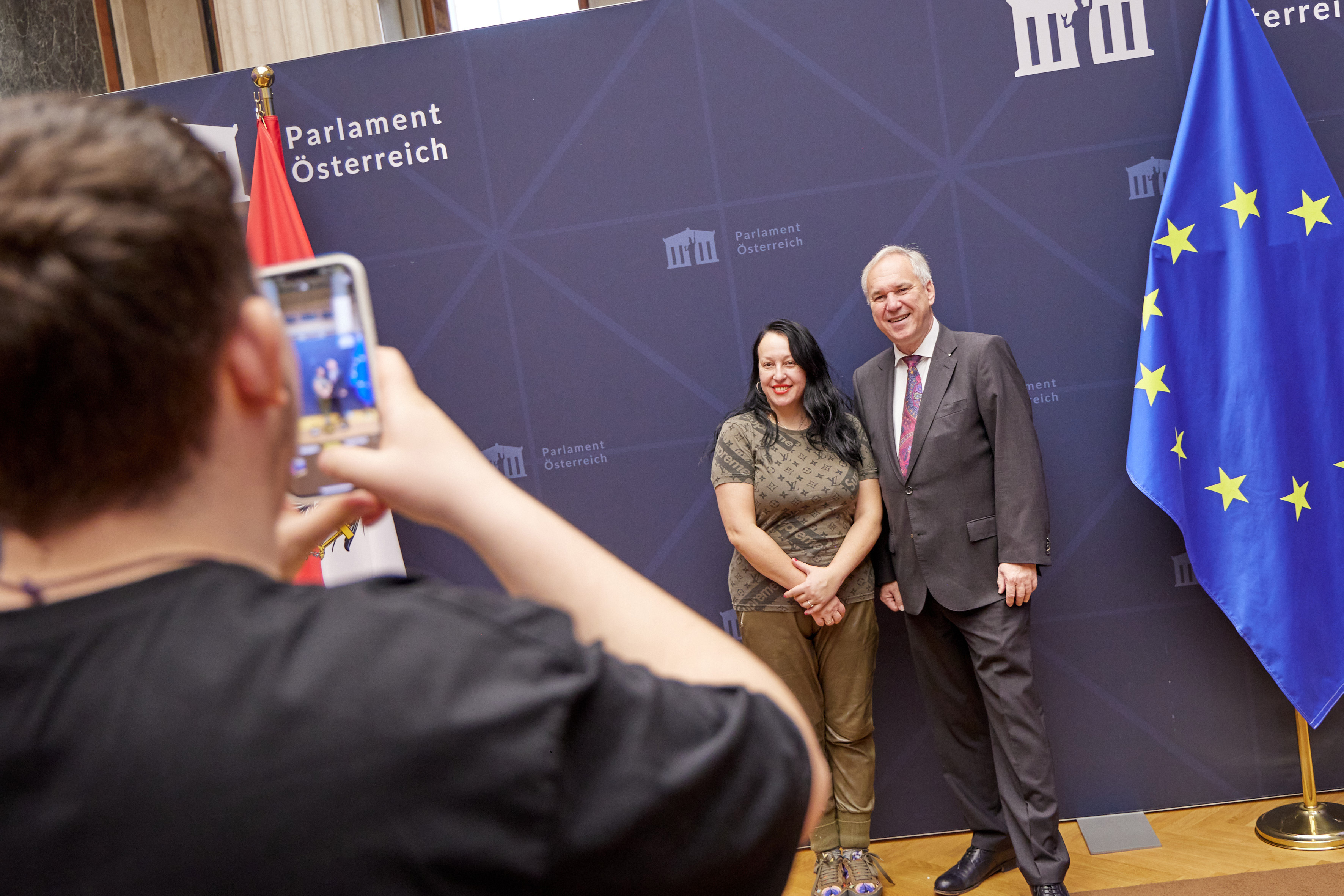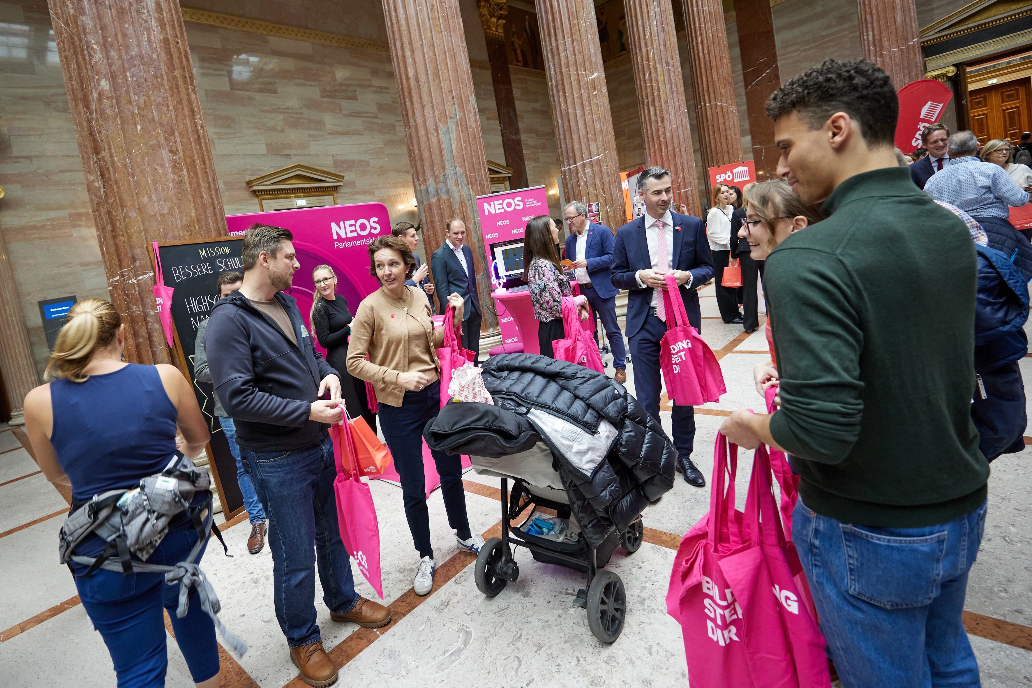 Nationalratspräsident Walter Rosenkranz (FPÖ) im Gespräch mit Besucherinnen und Besucher / Parlamentsdirektion/Thomas Topf