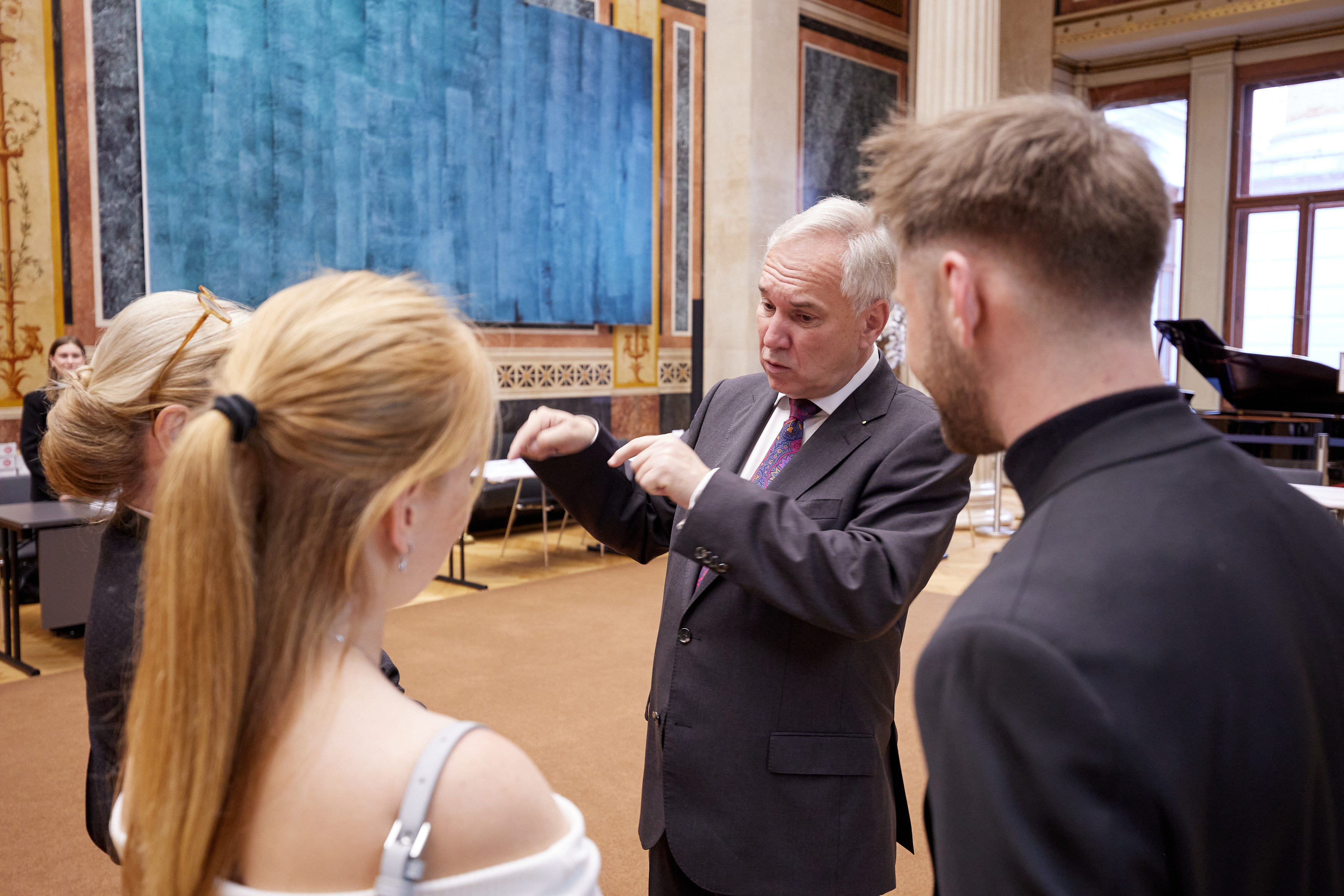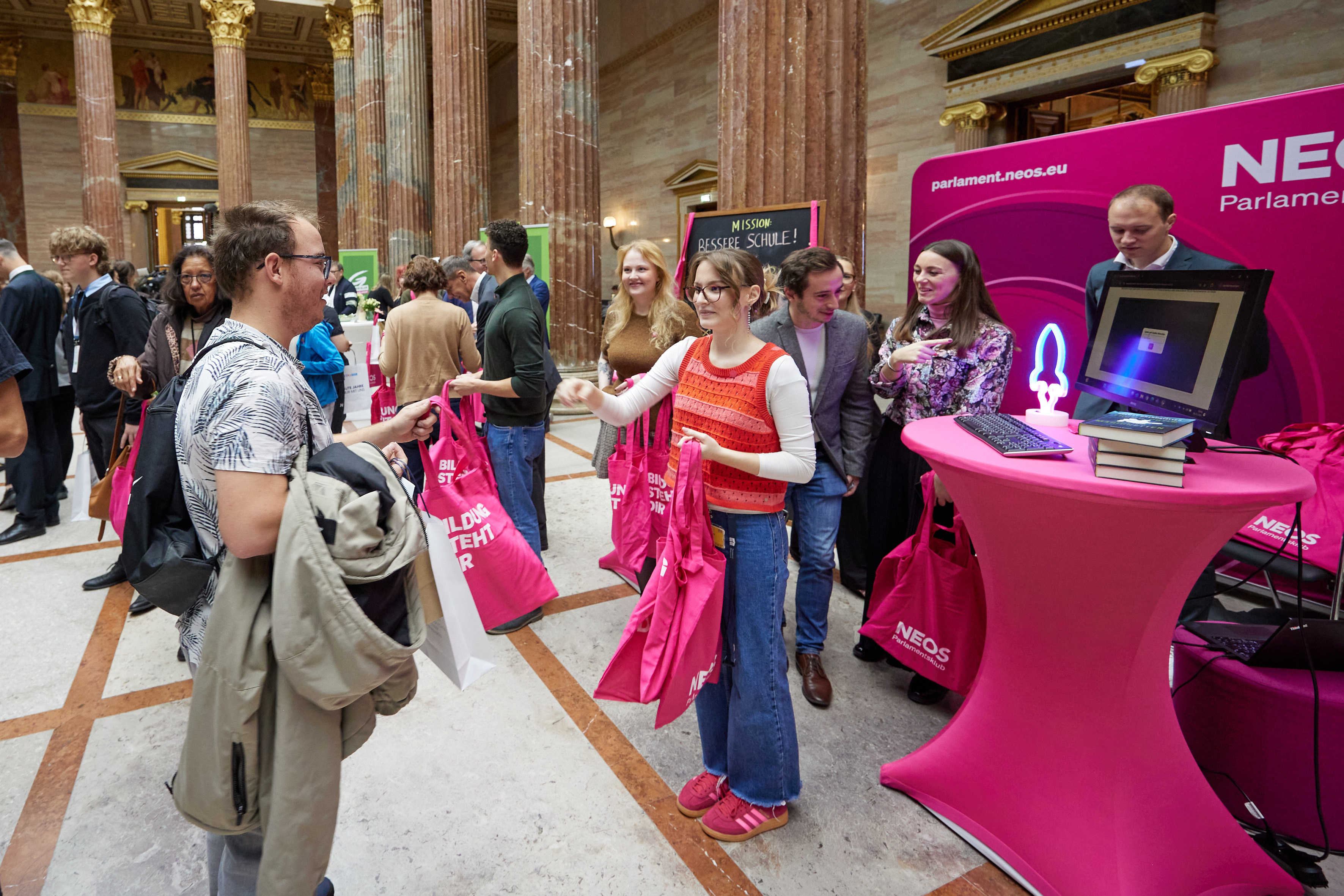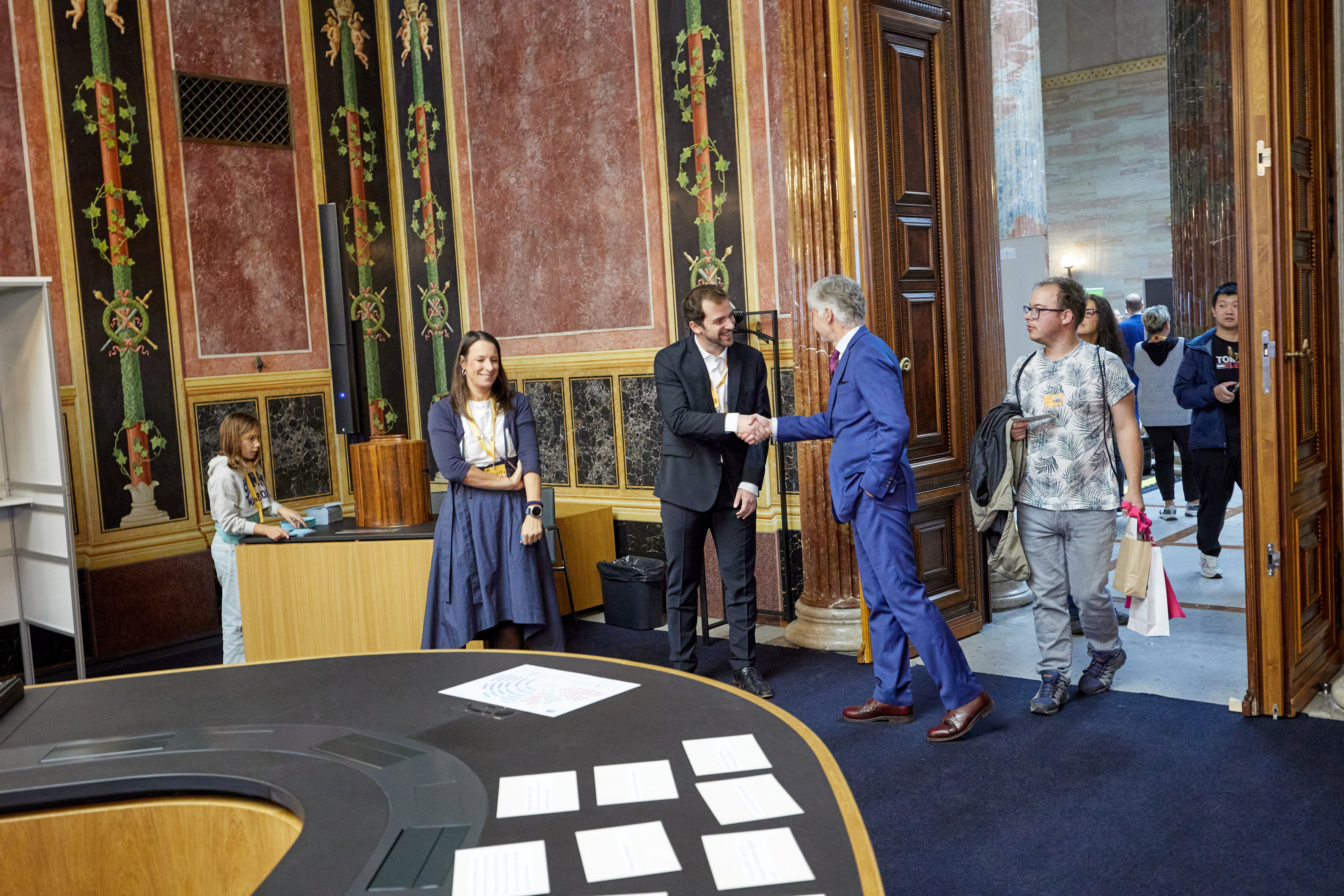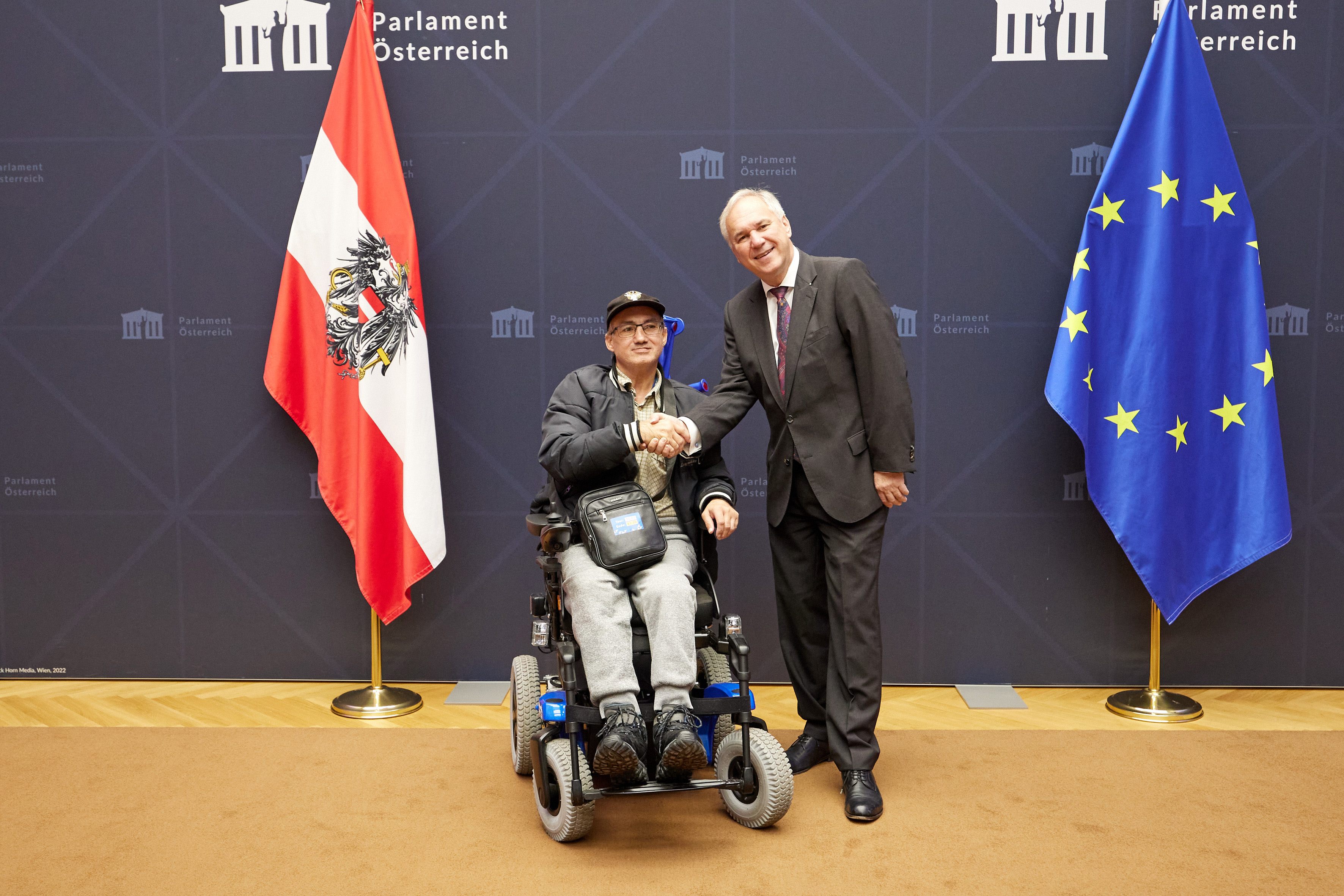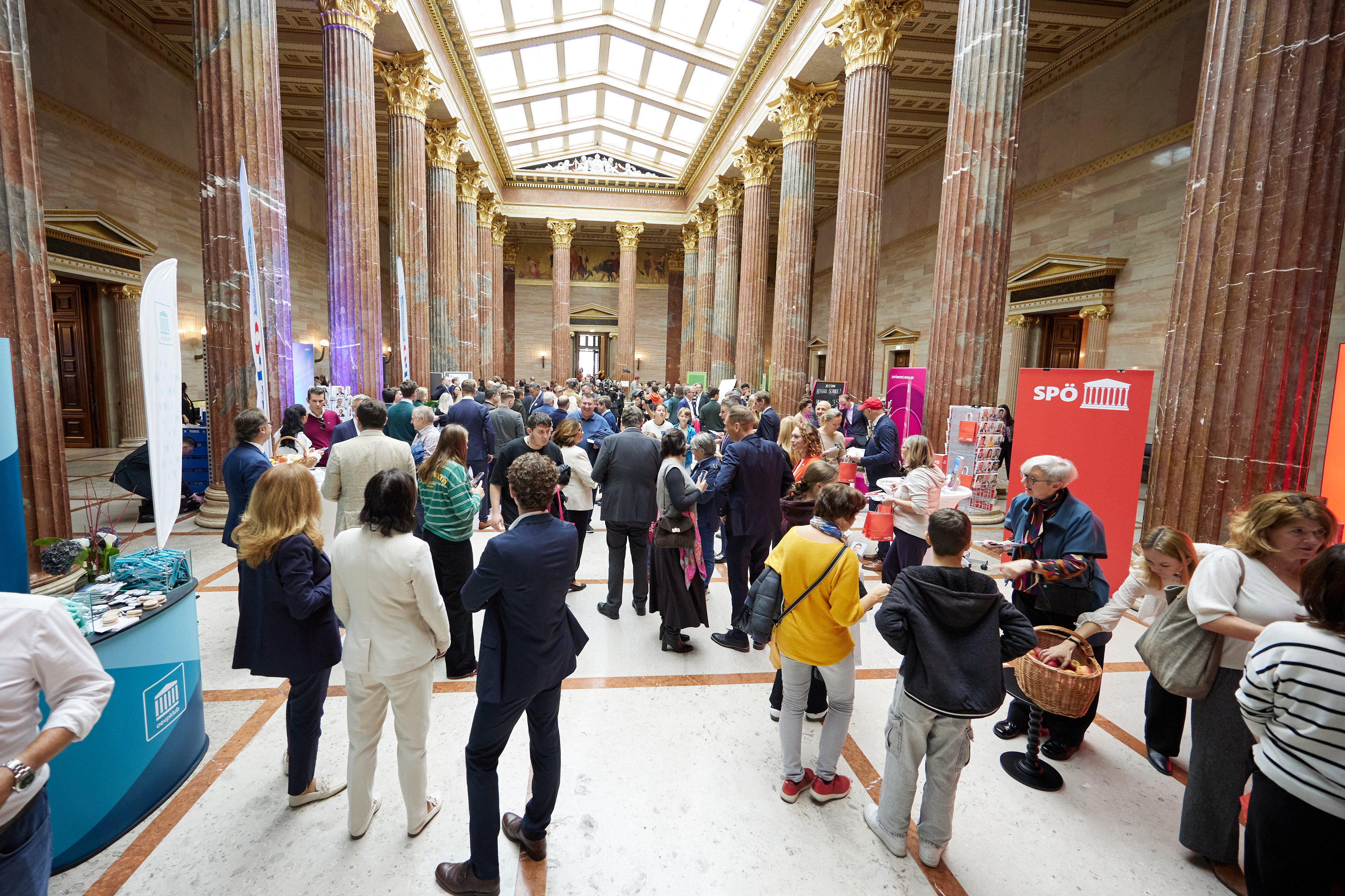 Nationalratspräsident Walter Rosenkranz (FPÖ) im Gespräch mit Besucherinnen und Besucher / Parlamentsdirektion/Thomas Topf