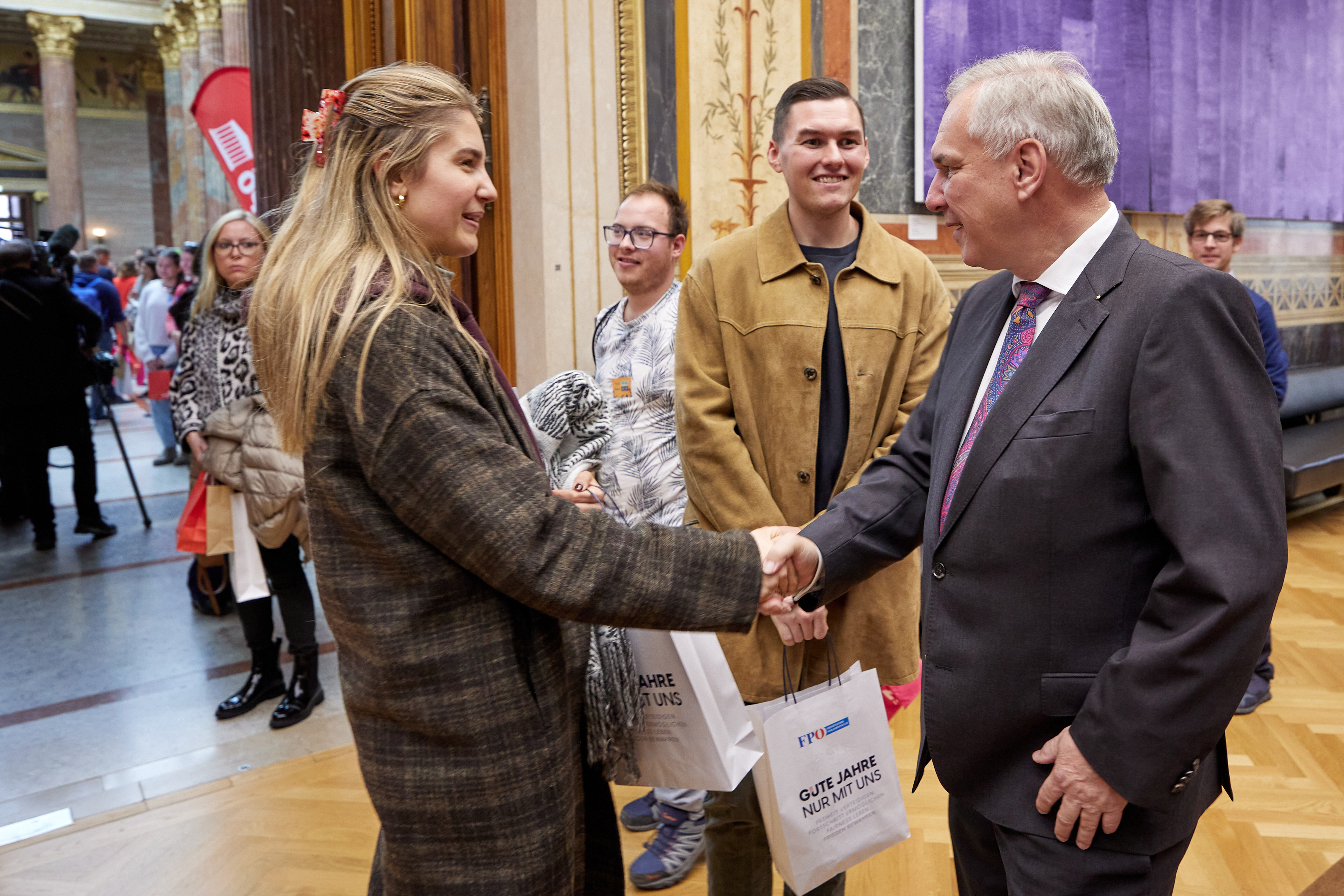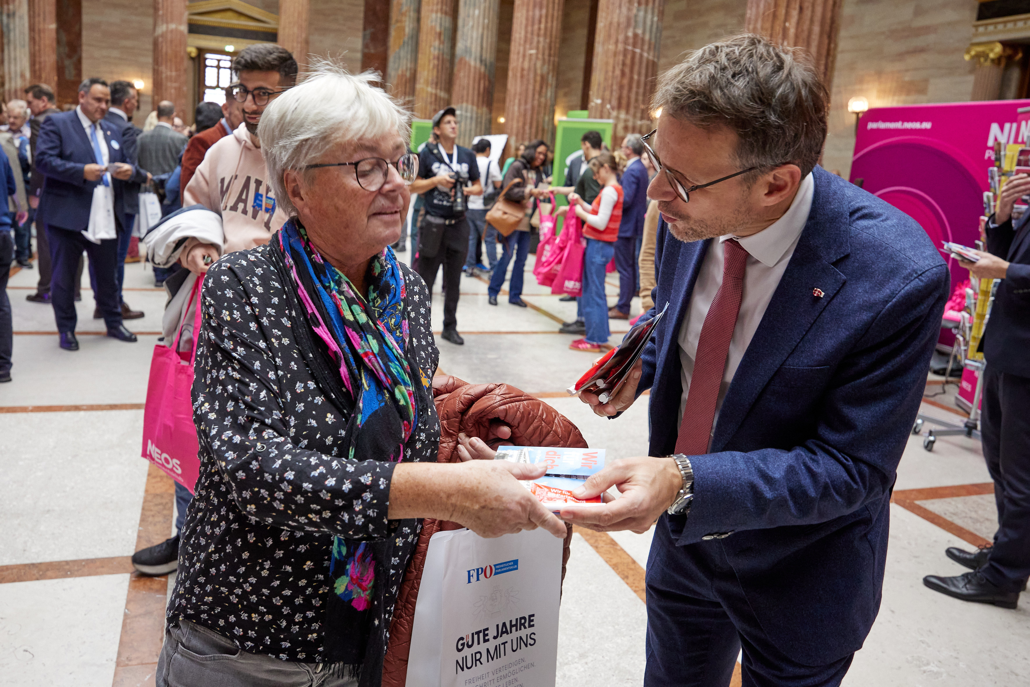 Nationalratspräsident Walter Rosenkranz (FPÖ) im Gespräch mit Besucherinnen und Besucher