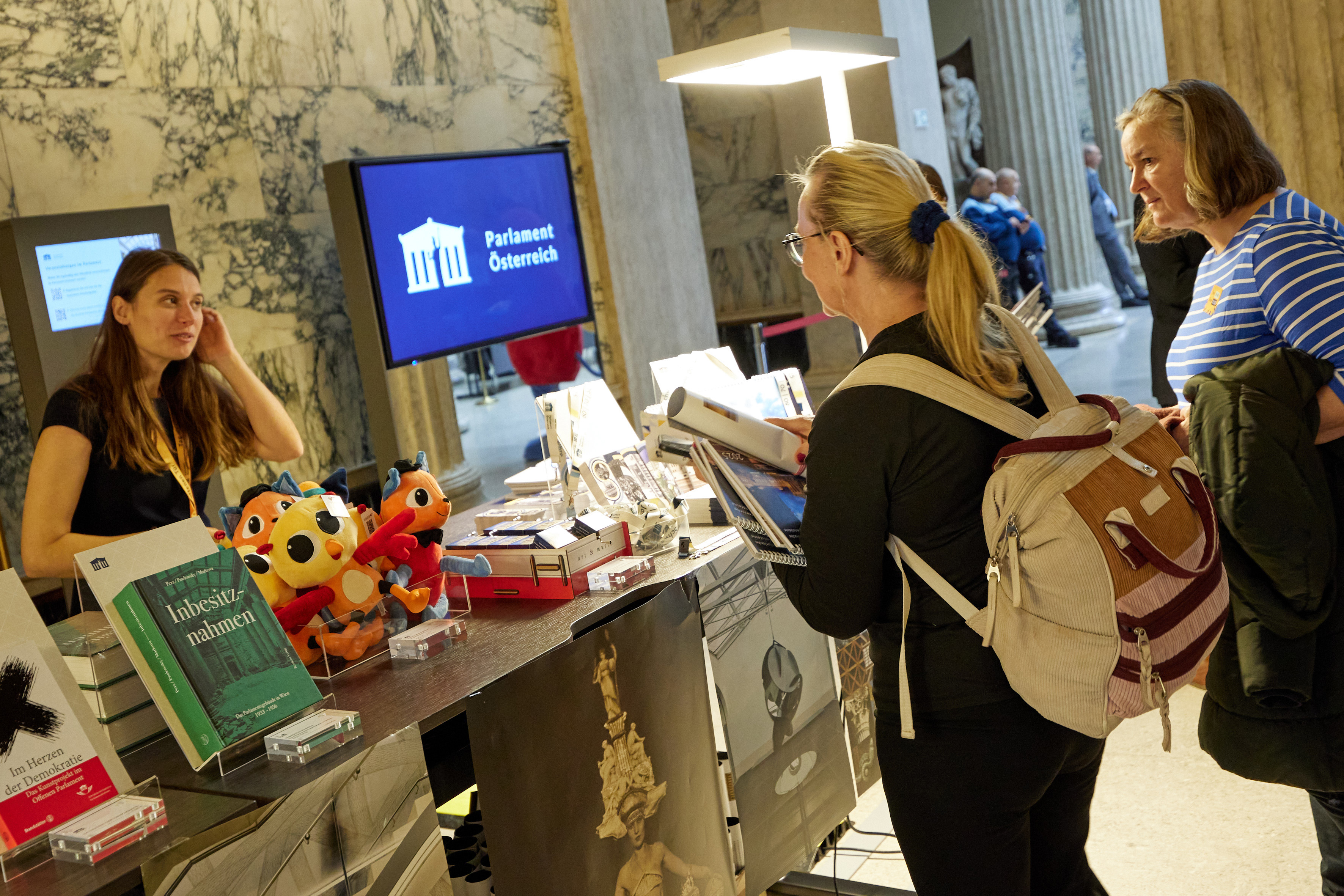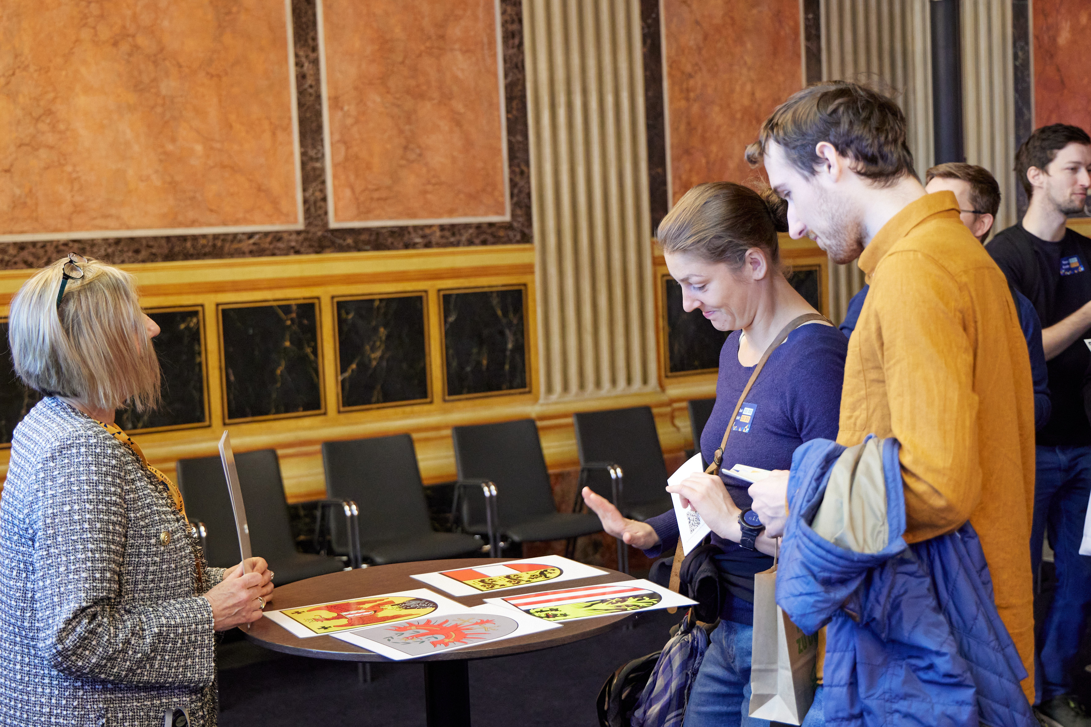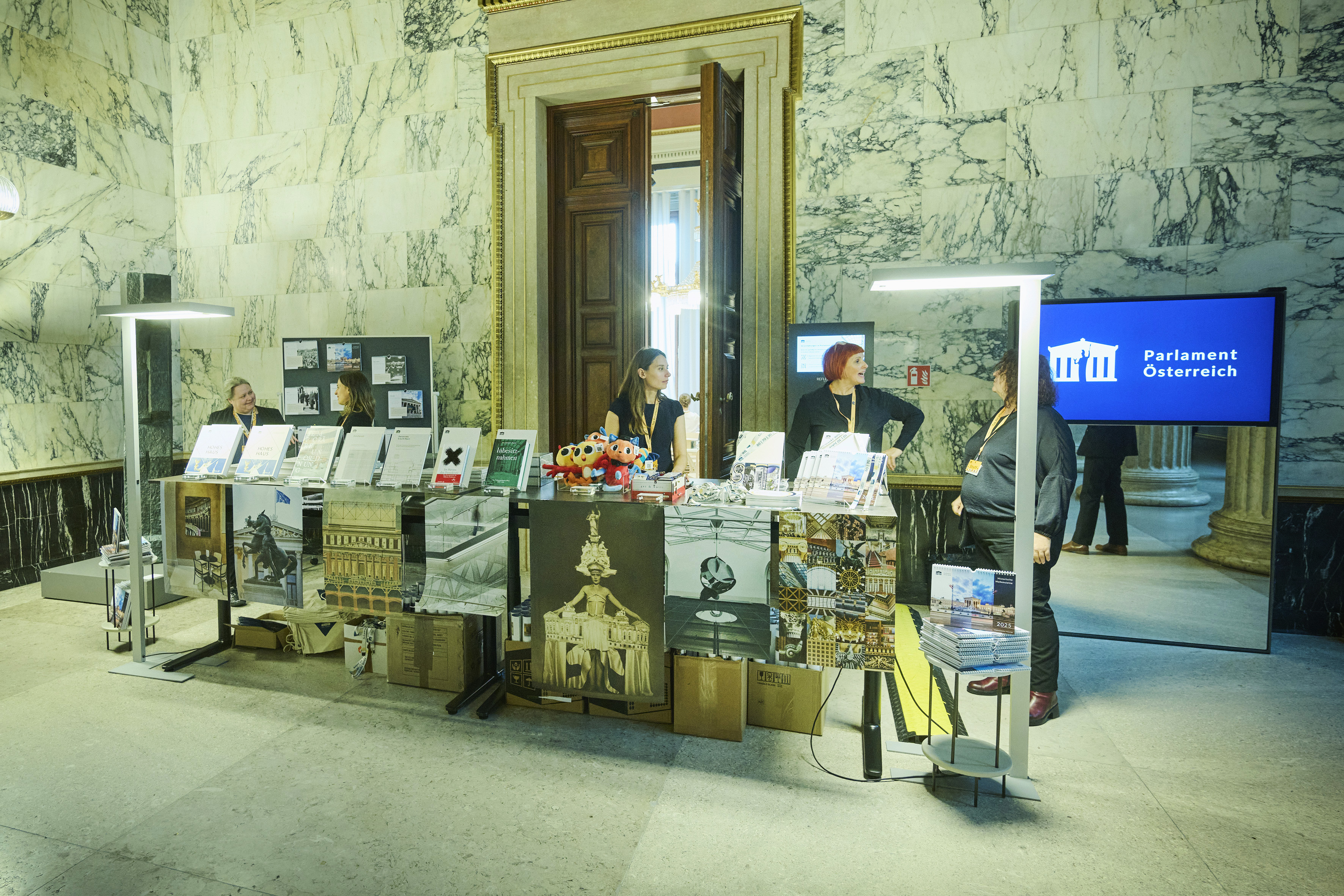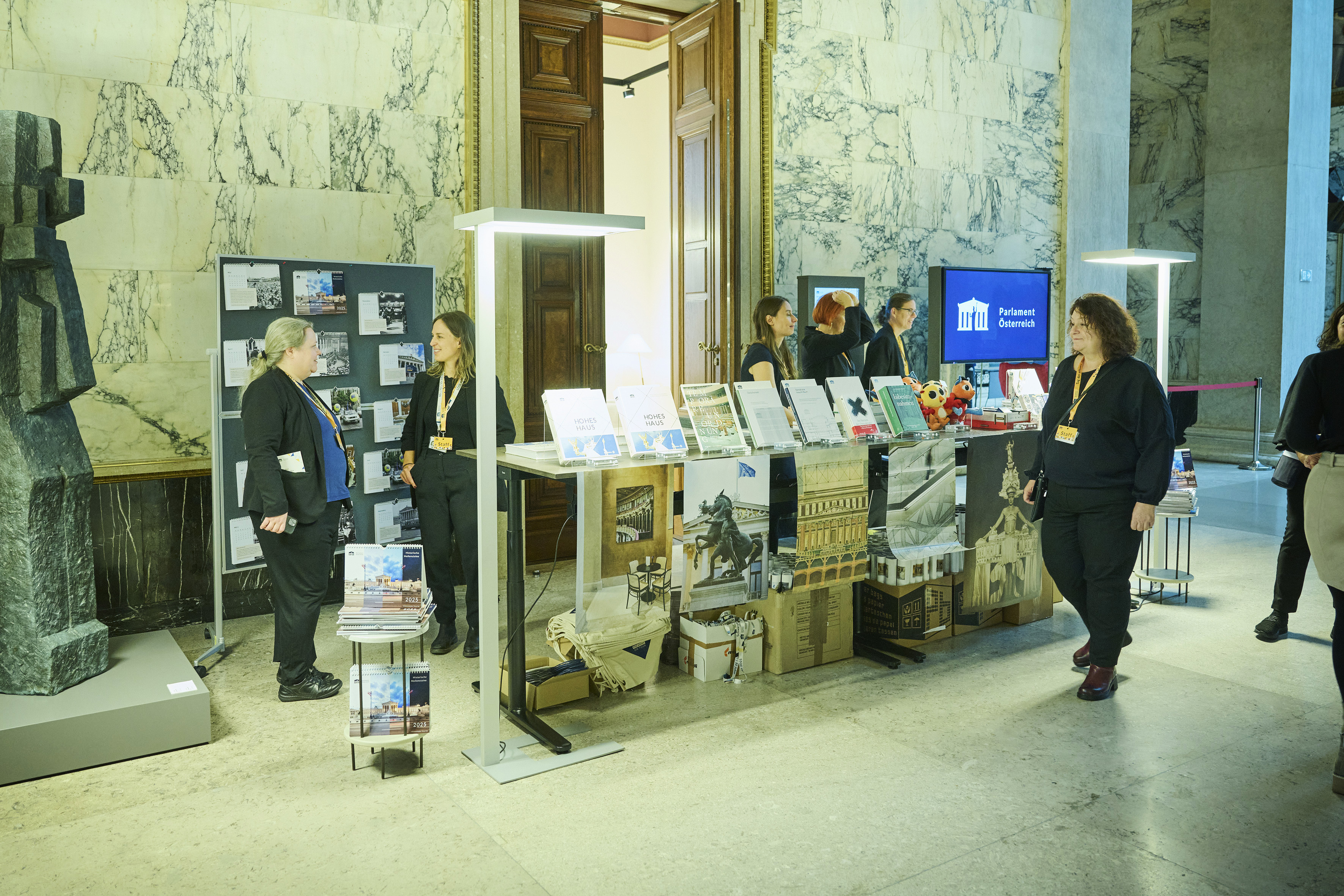 Mitarbeiterinnen und Mitarbeiter der Parlamentsdirektion präsentieren ihre Dienste