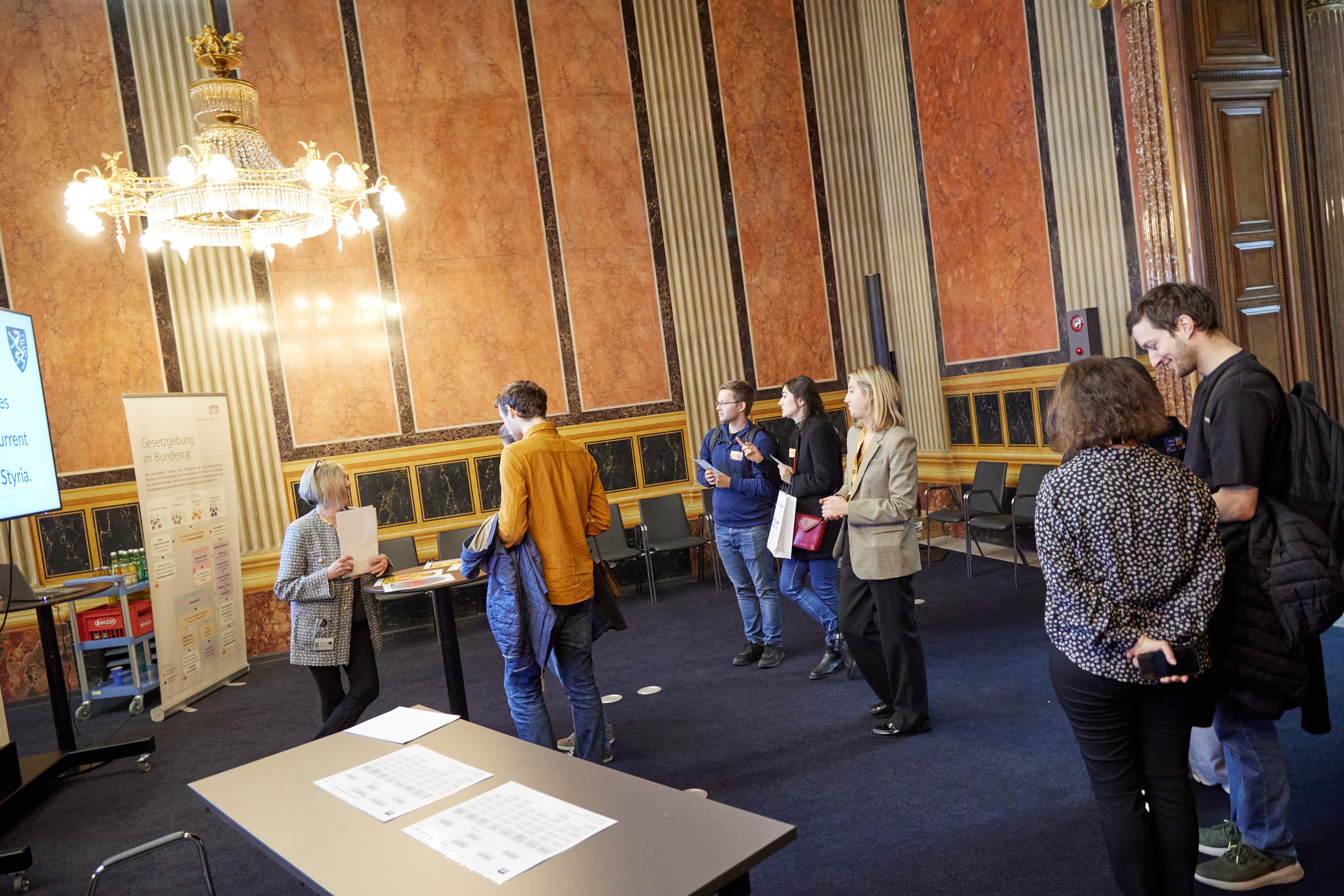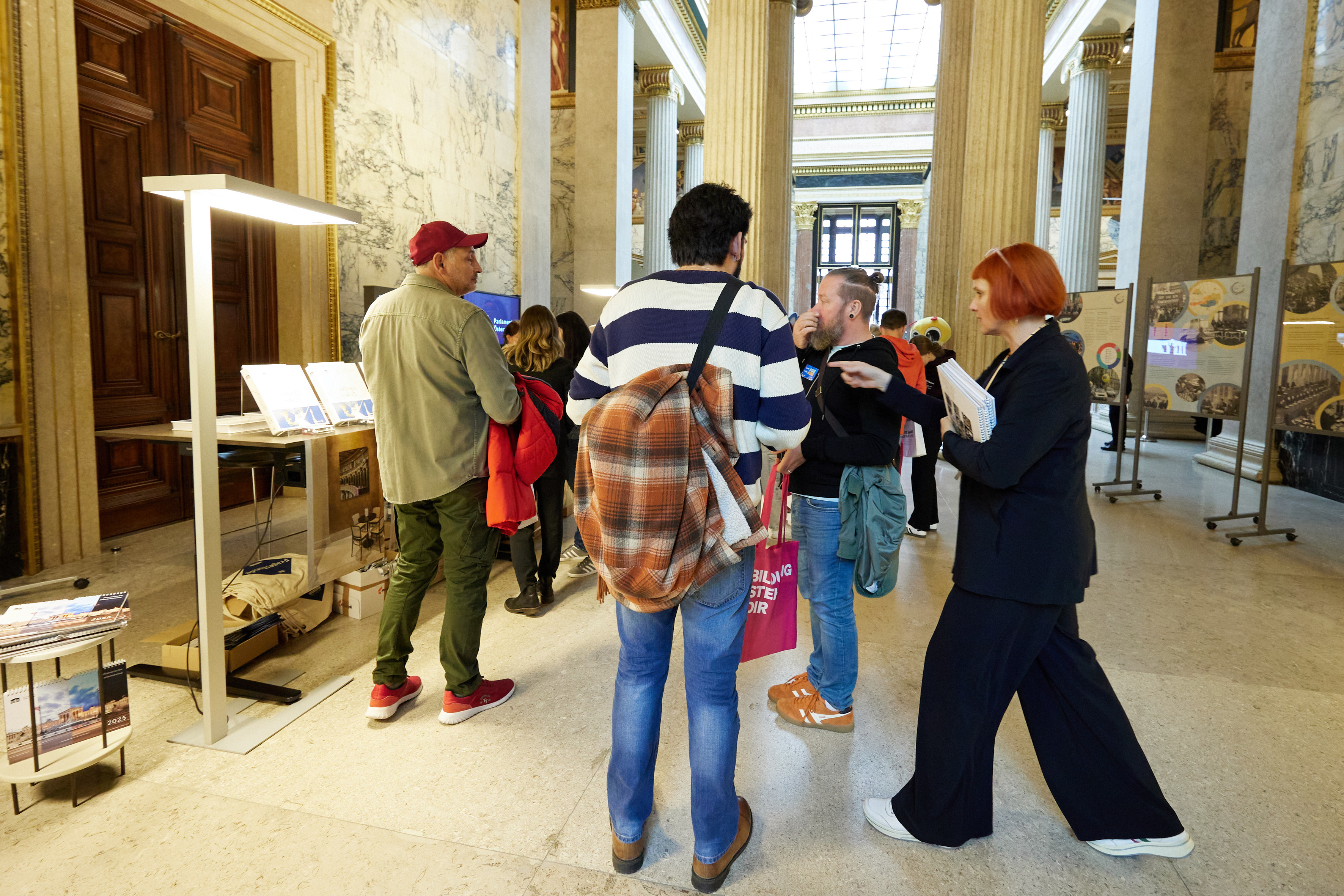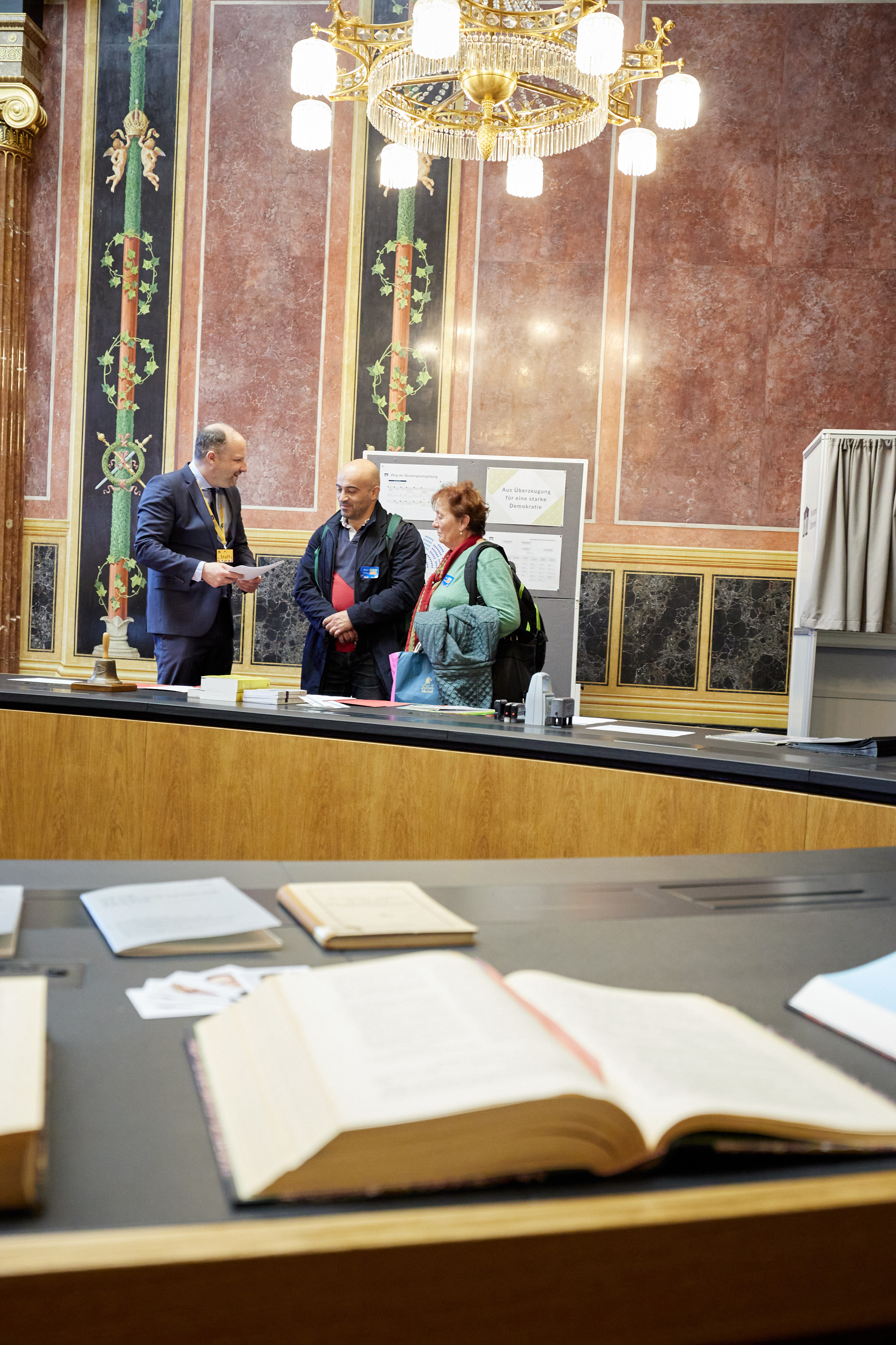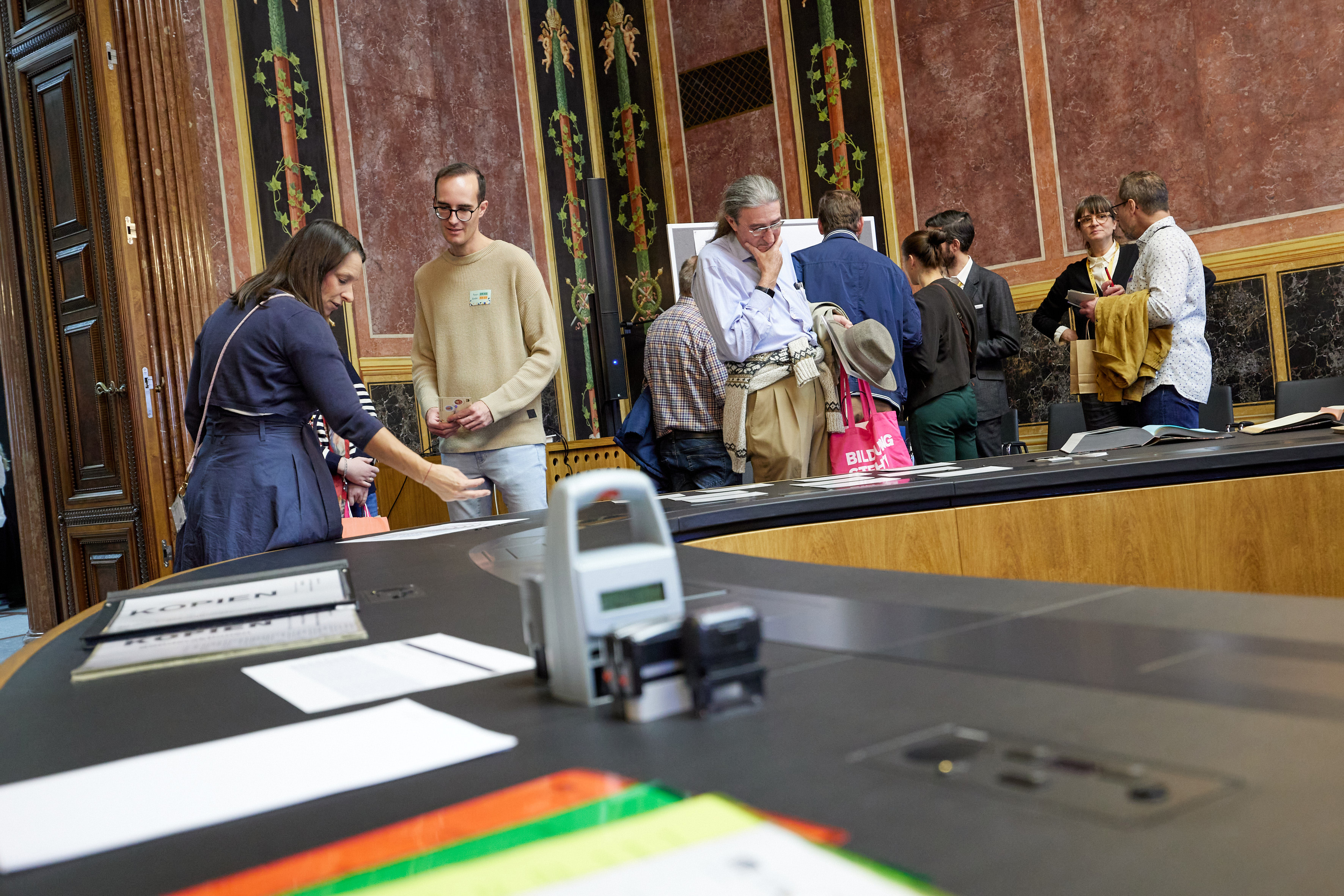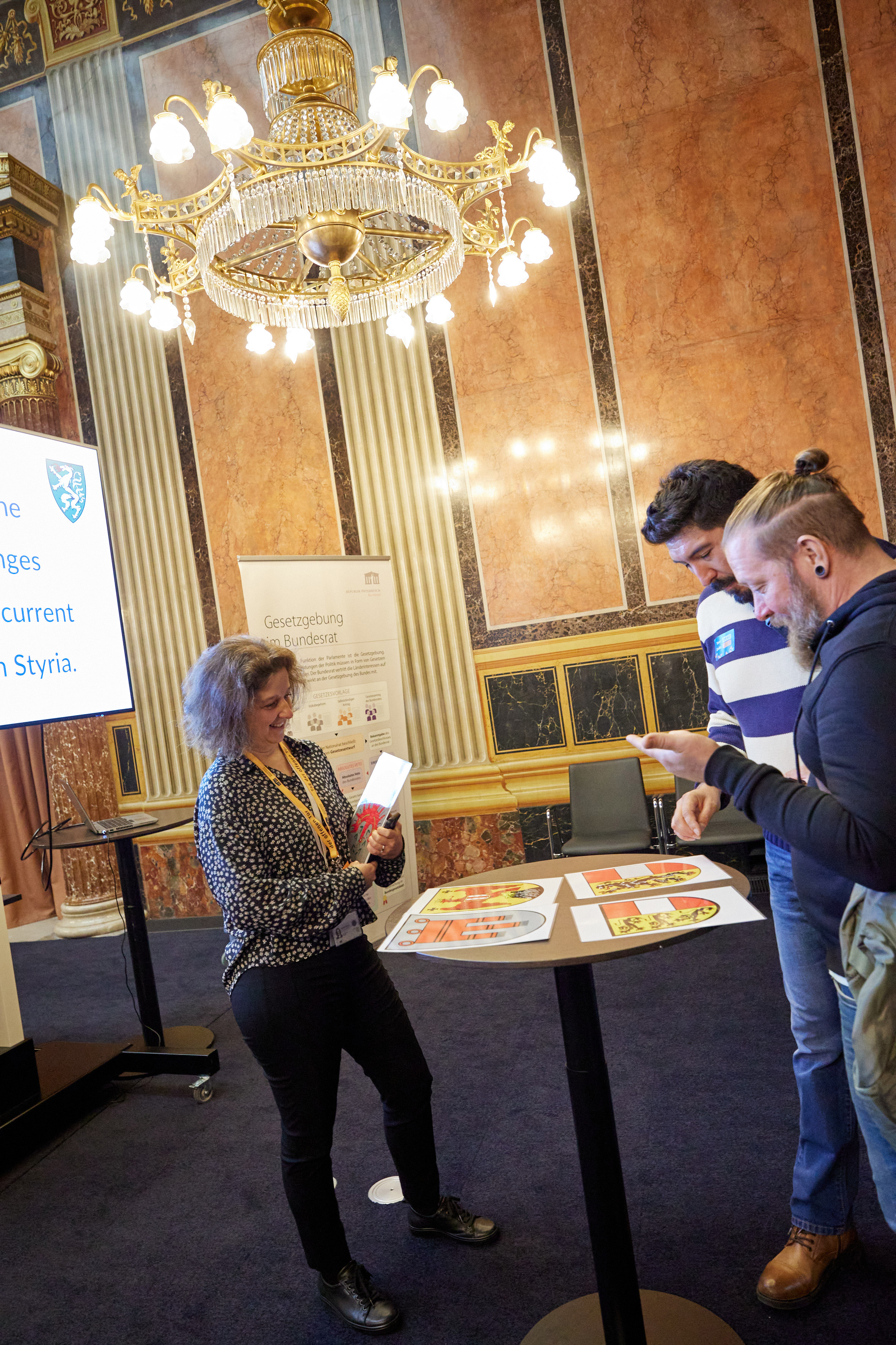 Mitarbeiterinnen und Mitarbeiter der Parlamentsdirektion präsentieren ihre Dienste