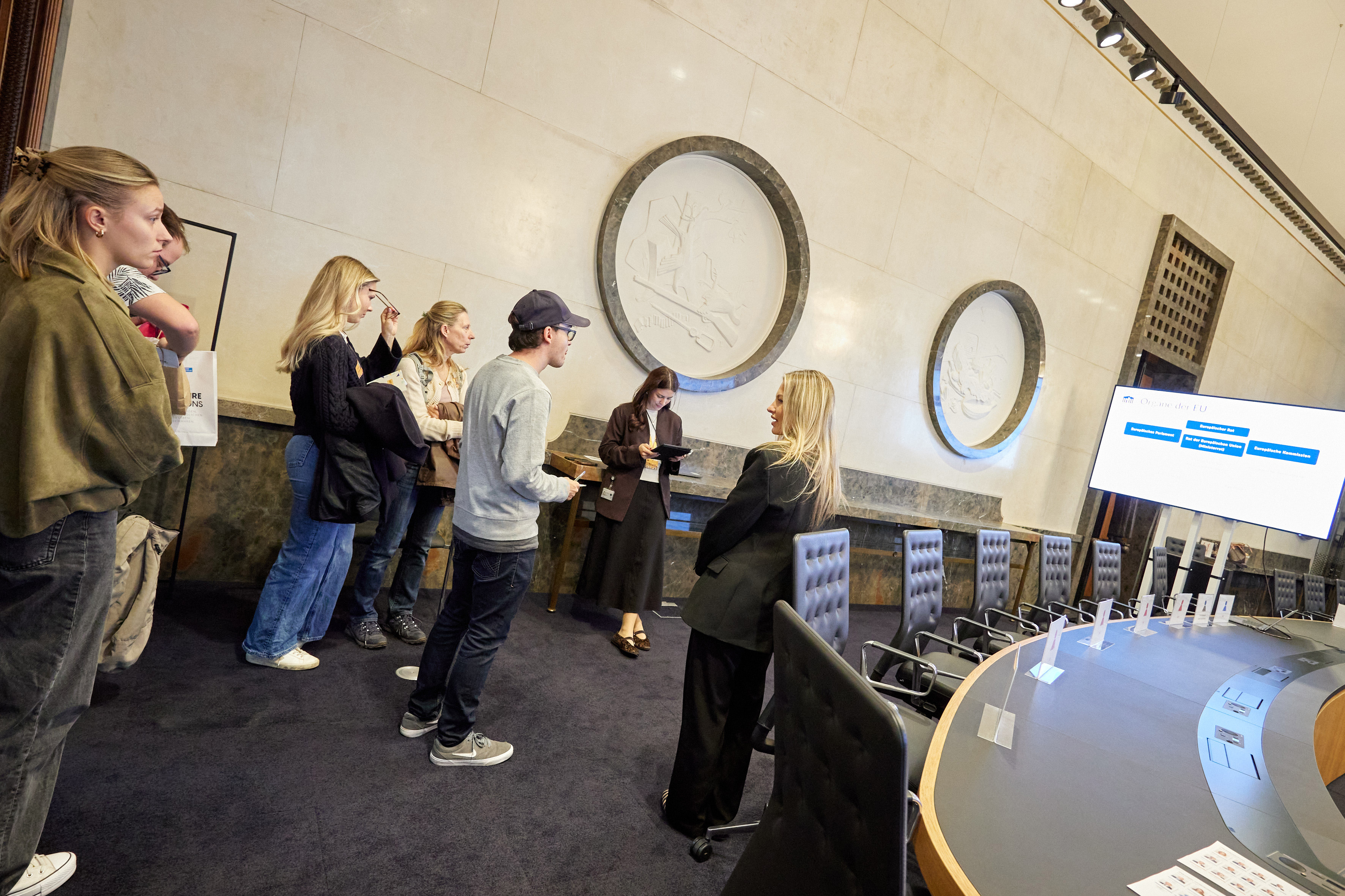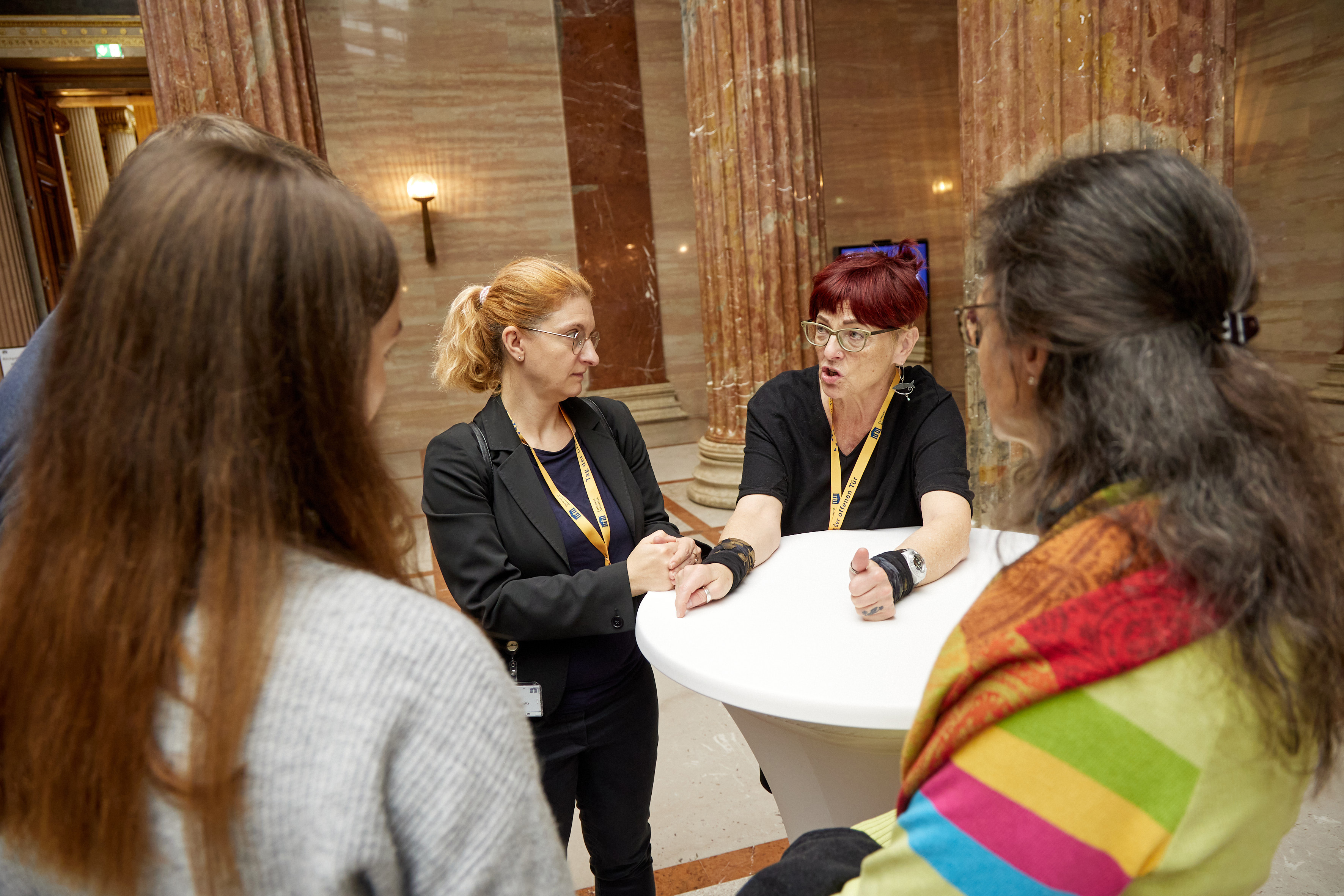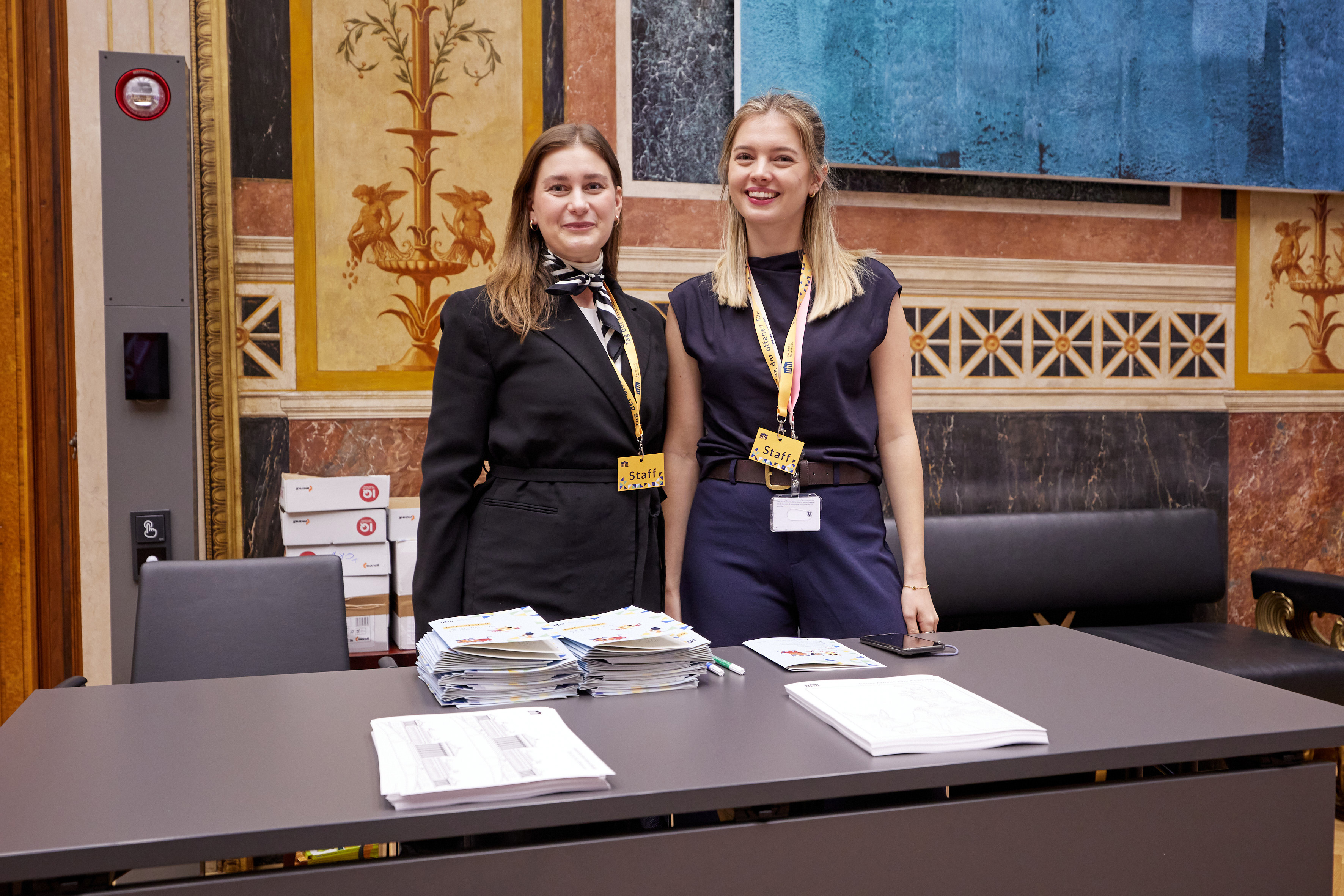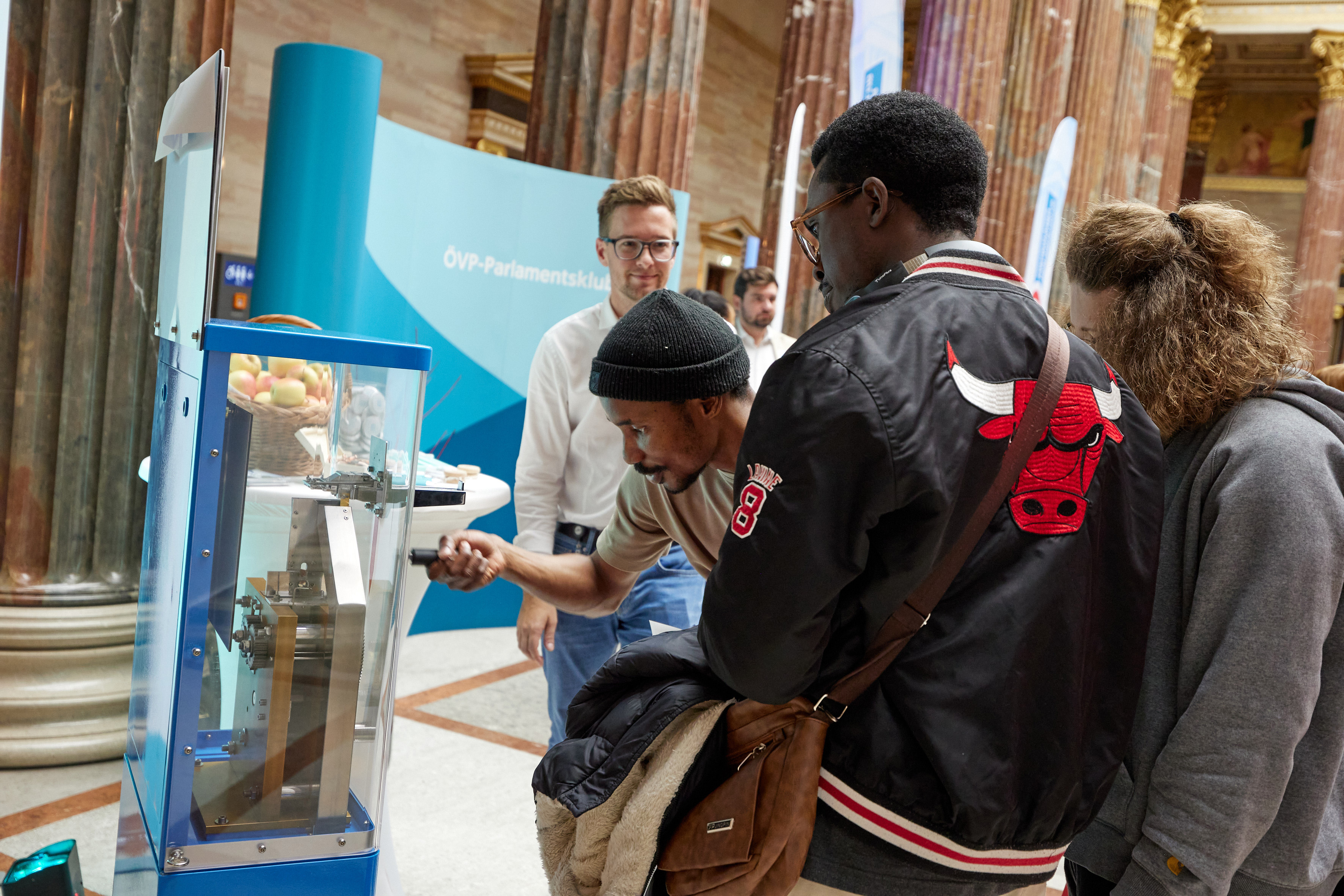 Mitarbeiterinnen und Mitarbeiter der Parlamentsdirektion präsentieren ihre Dienste