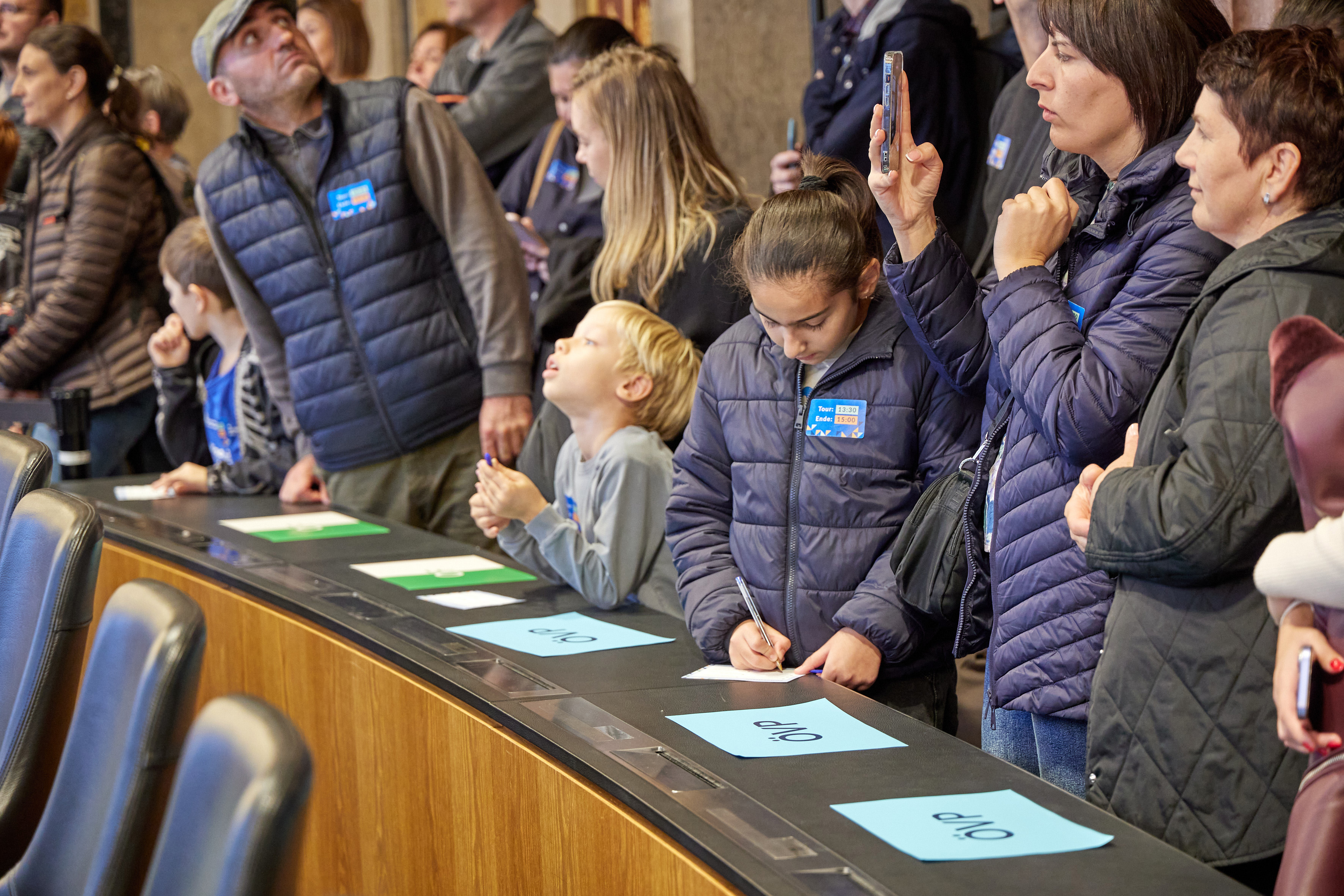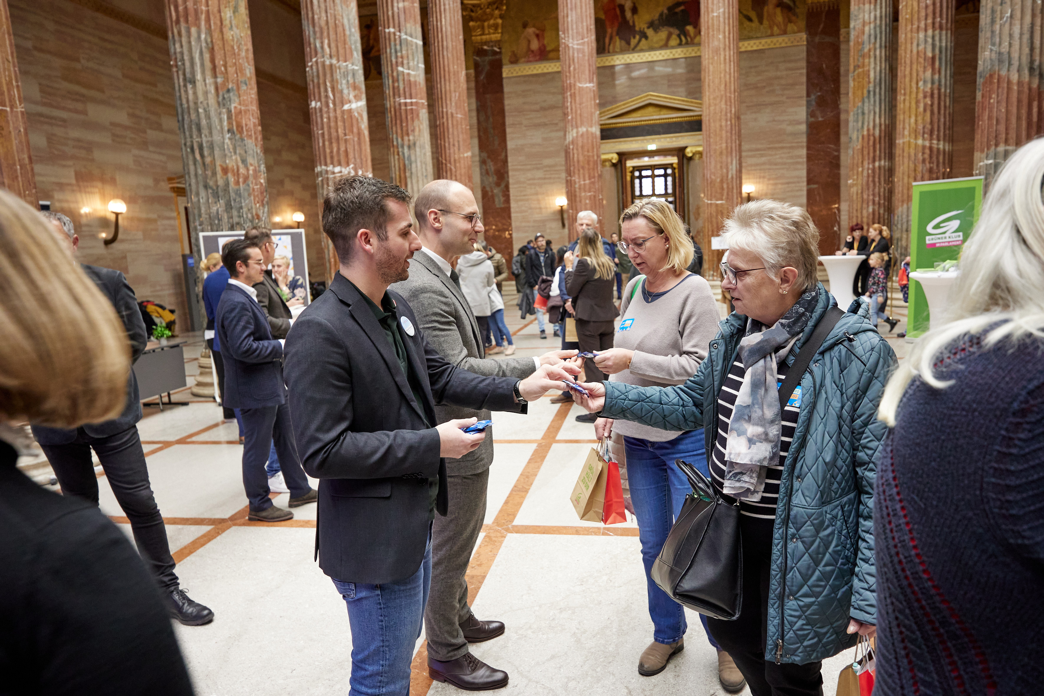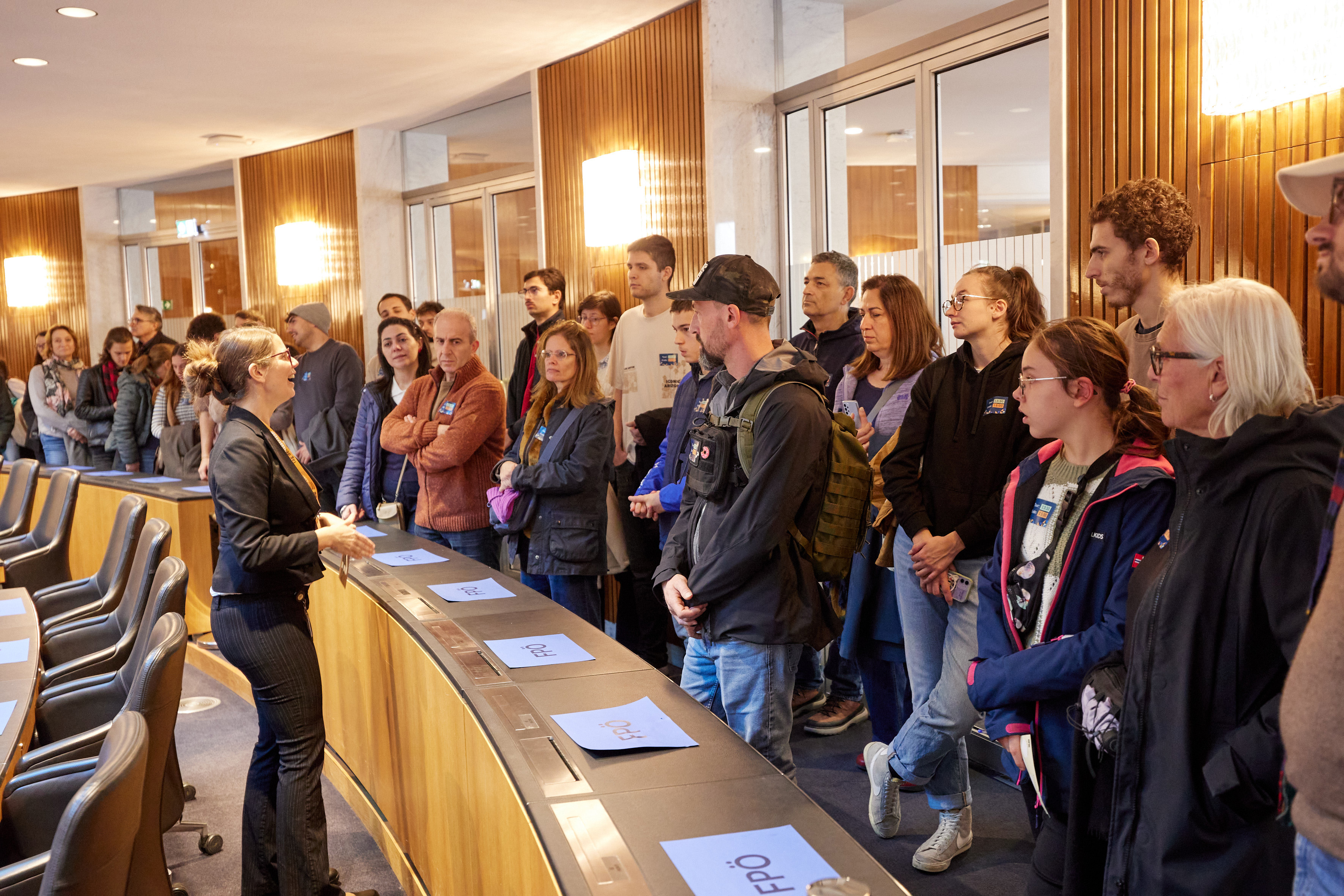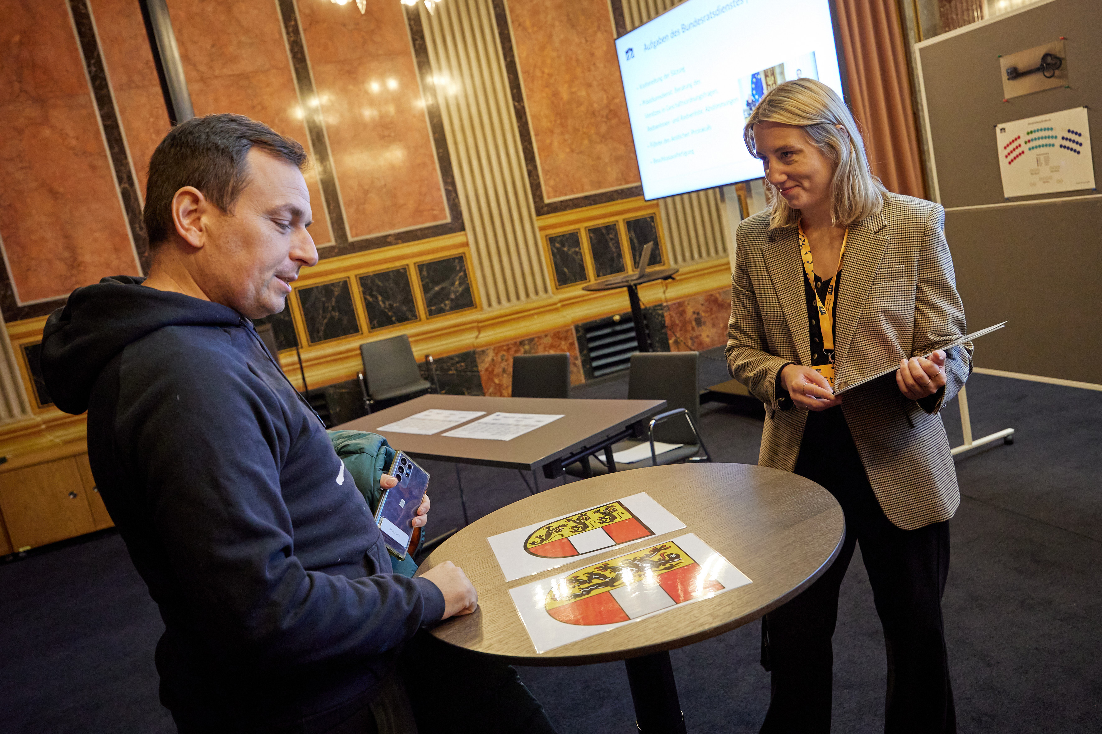 Mitarbeiterinnen und Mitarbeiter der Parlamentsdirektion präsentieren ihre Dienste